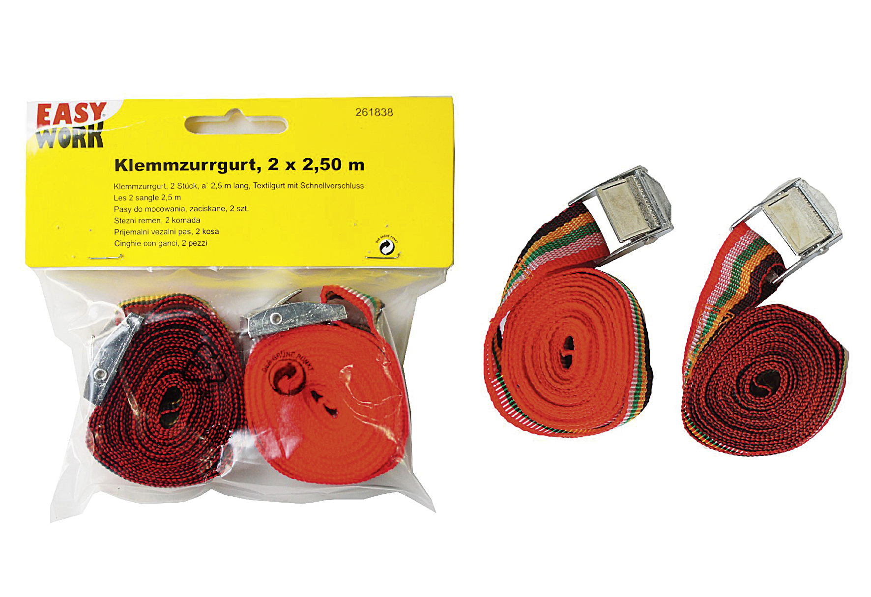 Klemmzurrgurt, 2 Stück, a 2,5 m lang, Textilgurt mit Schnellverschluss