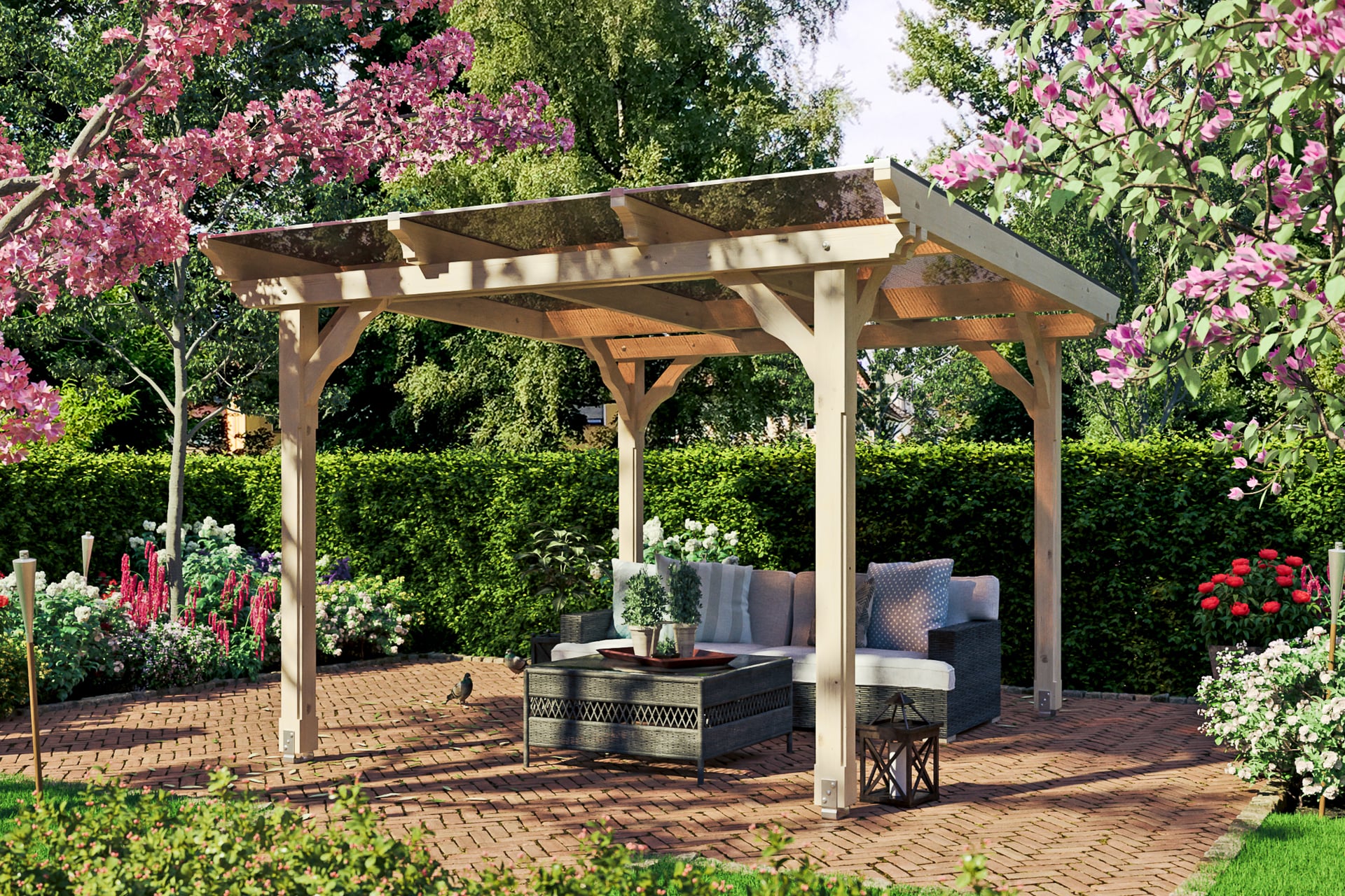 Dieser Bausatz ist farblich unbehandelt. Hölzer im Außenbereich sind der ständigen Witterung, sowie dem Risiko von Pilz- und Insektenbefall ausgesetzt. Daher ist ein regelmäßiger Schutzanstrich unbedingt erforderlich. Der allseitige Erstanstrich sollte vor der Montage erfolgen. Verwenden Sie zuerst Holzschutzgrund zum Schutz gegen Pilz und Insektenbefall. Anschließend, gegen Verfärbung und Schäden durch UV-Licht, je eine Zwischen- und Schlußbeschichtung mit hochwertiger Holzschutzlasur oder -farbe. Rechnen Sie mit Pflegeintervallen von ca. 4-5 Jahren, spätestens aber vor dem Eintreten sichtbarer Schäden. Beachten Sie dazu auch die Verarbeitungsrichtlinien des Lasurherstellers.