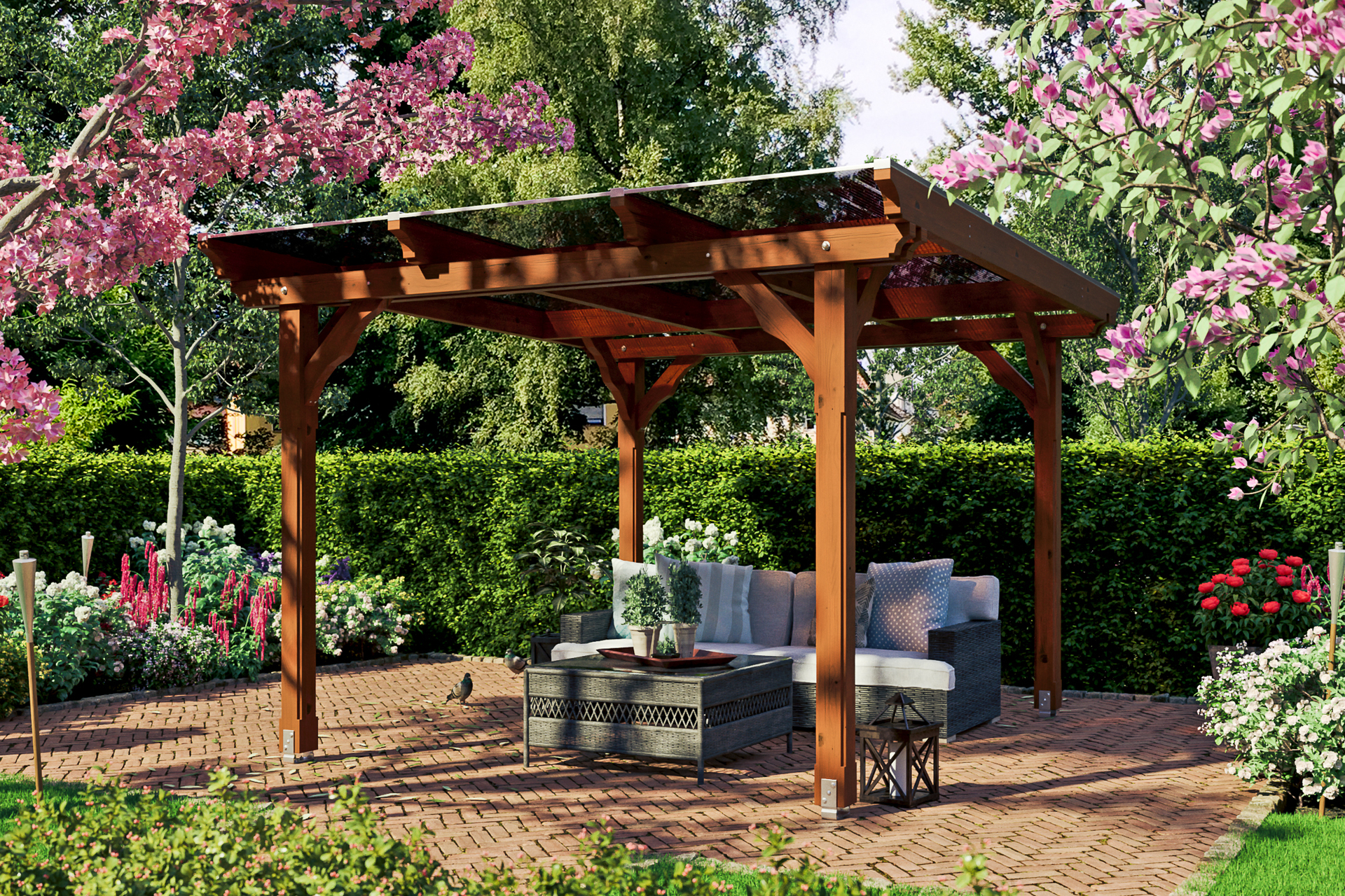 Wenn Sie eine zusätzliche Veredelung der Oberfläche wünschen, schleifen Sie nach der Montage die sichtbaren Oberflächen leicht an und streichen diese mit hochwertiger Lasur bzw. Farbe. Nutzen Sie dazu unser optionales Farb- bzw. Lasursortiment. Abgedruckte Farbmuster sind nicht verbindlich, farbliche Abweichungen können auftreten. Ablagespuren bei farblich allseitig behandelten Bauteilen sind technisch bedingt.
