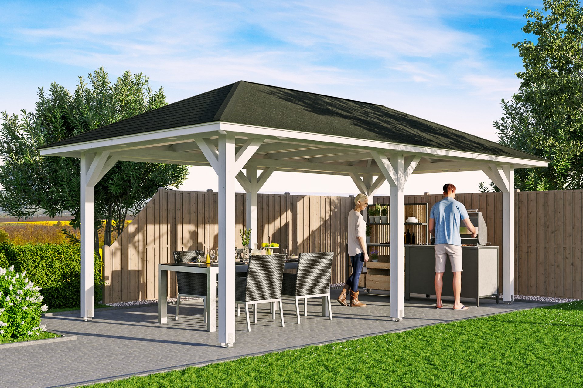 Das Dach wird mit 20 mm starker Dachschalung zur Eindeckung mit Dachschindeln geliefert (Dachschindeln sind als Zubehör optional bestellbar).