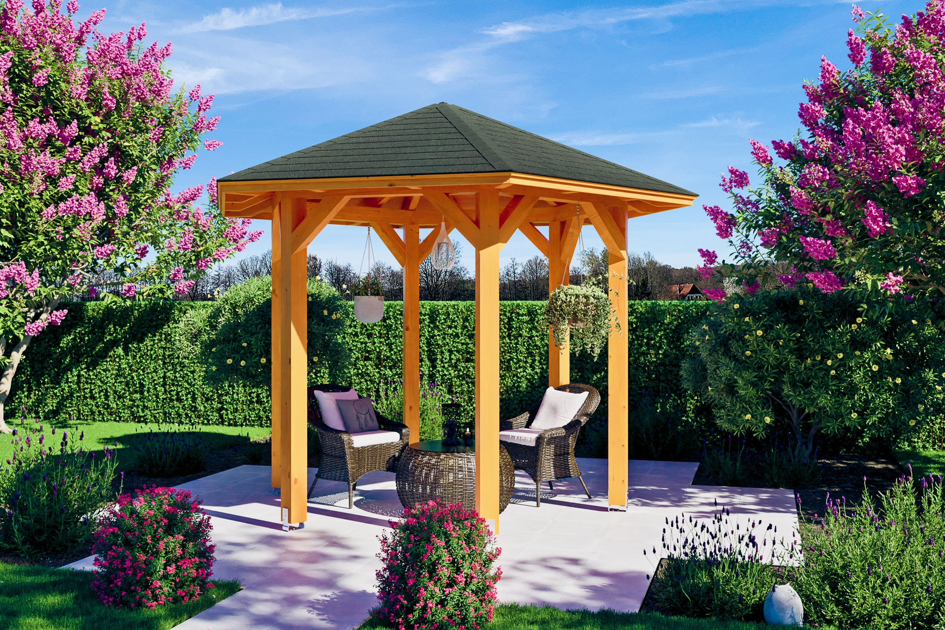 Das Dach wird mit 20 mm starker Dachschalung zur Eindeckung mit Dachschindeln geliefert (Dachschindeln sind als Zubehör optional bestellbar).