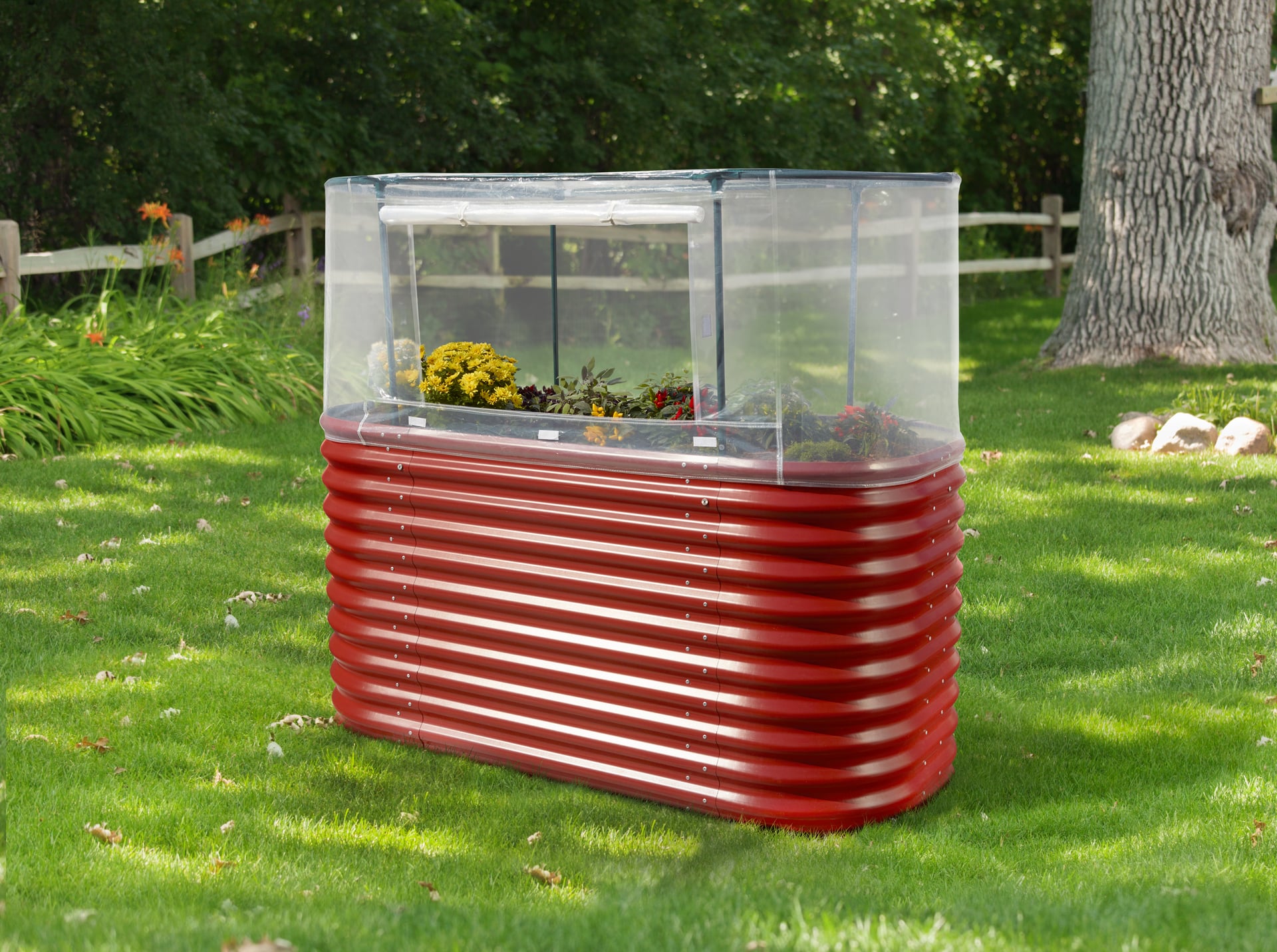 Schützen Sie Ihre Pflanzen im Handumdrehen zuverlässig vor Schädlingen und Niederschlag: Die PE-Folie mit integriertem UV-Schutz ist mit Klettverschlüssen am Gestänge befestigt, das einfach in die Erde gesetzt wird. Die Folie wird am unteren Rand über das Hochbeet gespannt.