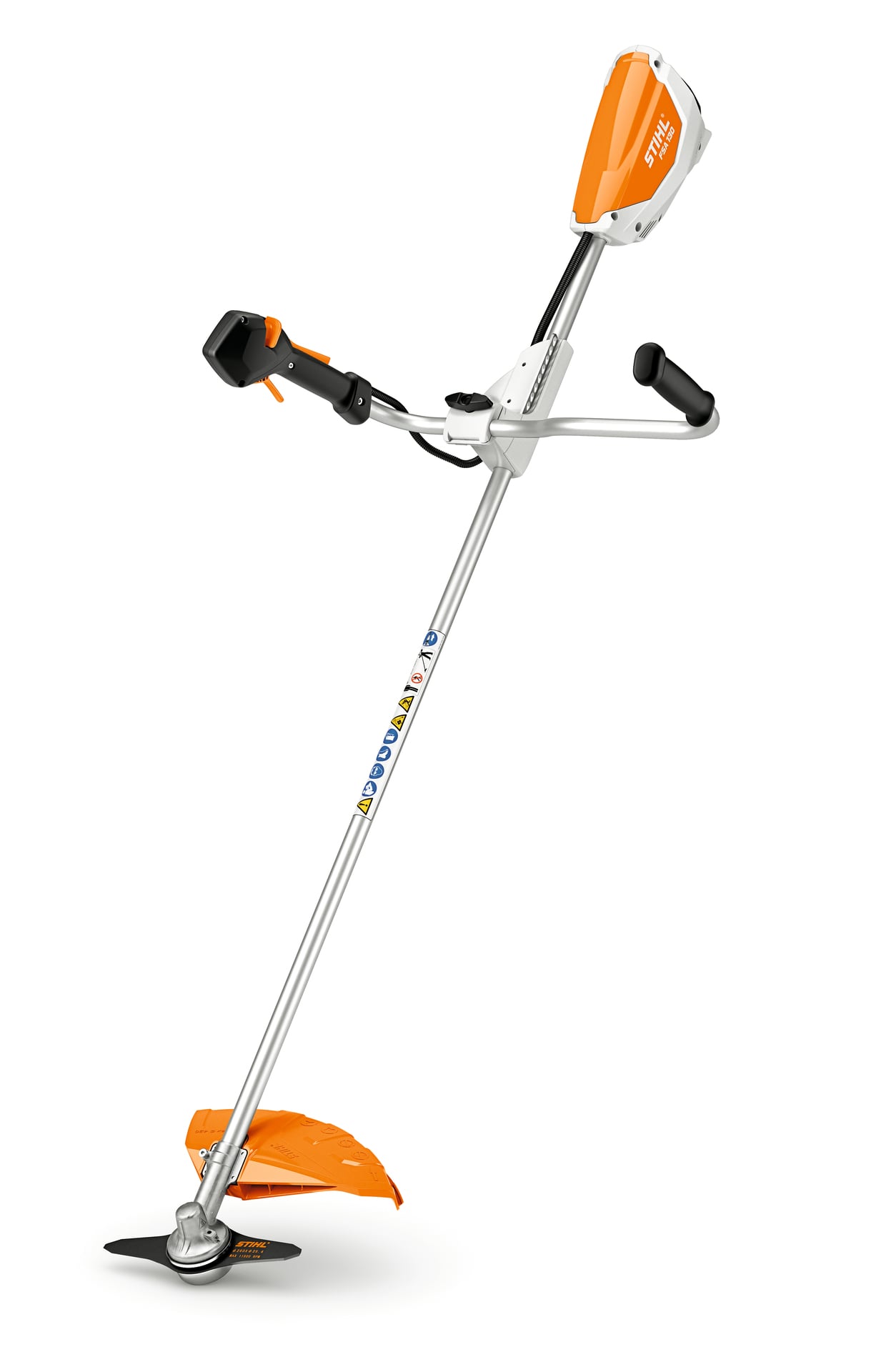 Leistungsstarke und leichte Akku-Motorsense für Flächenarbeiten in zähem Gras. Schneidkreis-Durchmesser 260 mm mit Grasschneideblatt, drei Leistungsstufen einstellbar, Zweihandgriff. Einhängevorrichtung zum Tragen des Gerätes mit rückentragbarem Akku AR oder Tragsystem AP.