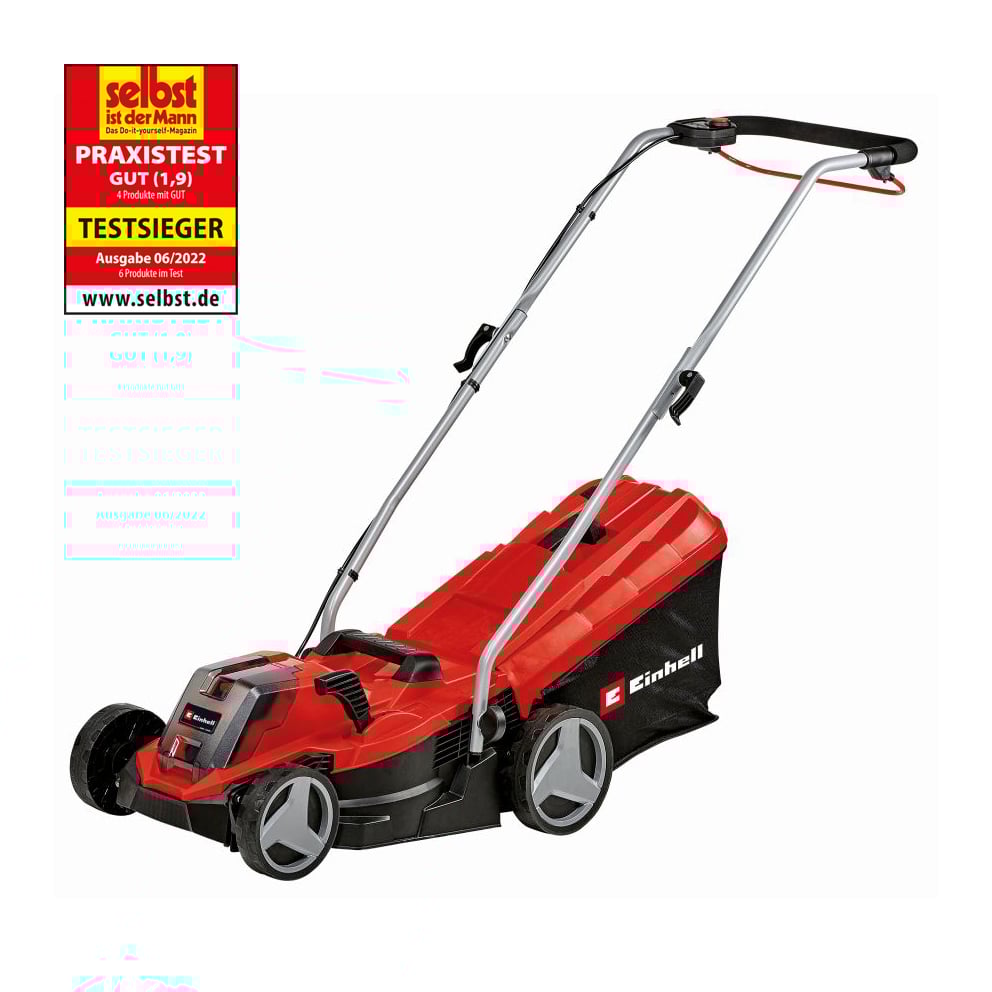 Der Einhell Akku-Rasenmäher GE-CM 18/33 Li (1×4, 0Ah) ist Mitglied der Power X-Change-Familie und wird empfohlen für 200m² Rasenfläche. Der Highwheeler wird von einem Einhell Brushlessmotor, einem bürstenlosen Elektromotor, angetrieben und verfügt über eine 5-stufige zentrale Schnitthöhenverstellung, einen 3-fach höhenverstellbaren, klappbaren Führungsholm und einen Grasfangkorb mit Füllstandsanzeige. der Mäher ist mit einem hochwertigen, schlagzähen Kunststoffgehäuse und mit einem integrierten Tragegriff ausgerüstet. Ein Akku 4, 0 Ah mit LED-Füllstandsanzeige. Geeignet für alle Geräte der Systemreihe – ein Ladegerät sind in der Lieferung inklusive.