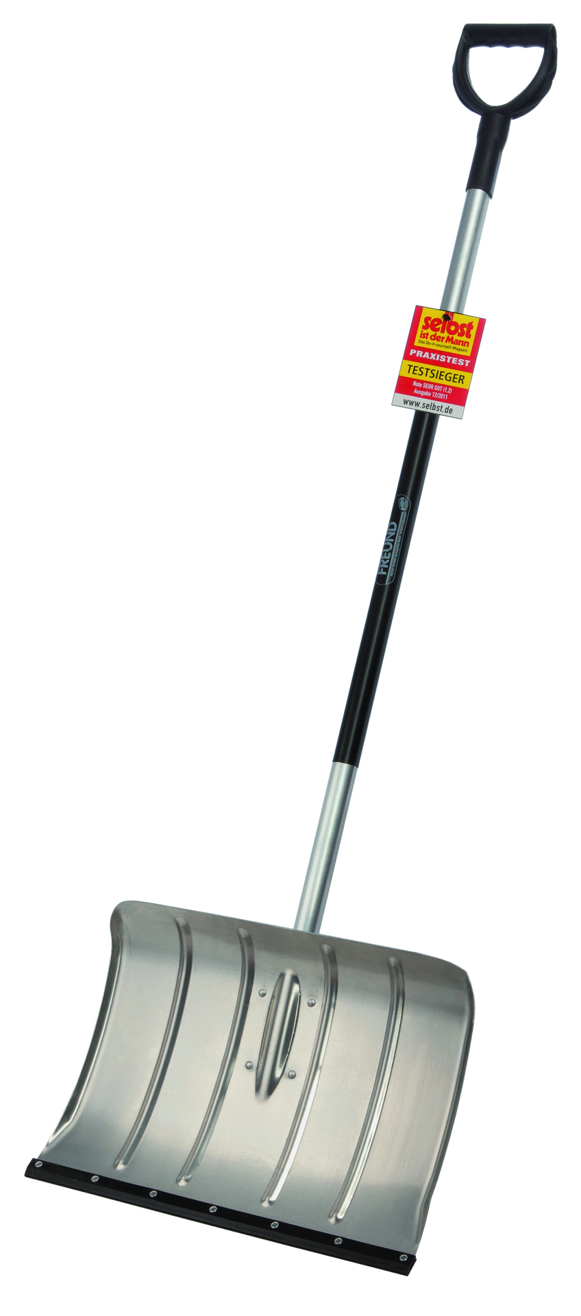 Aluminium-Schneeschieber Profimodell Flüsterkante, Blattmaße 50 x 35 cm, Blatt rippenverstärkt, mit aufgebogenem Seitenrand, mit Flüsterkante, für extra leises Schneeräumen und Aluminiumstiel mit D-Griff, Stiellänge ca. 125 cm, fertig montiert
