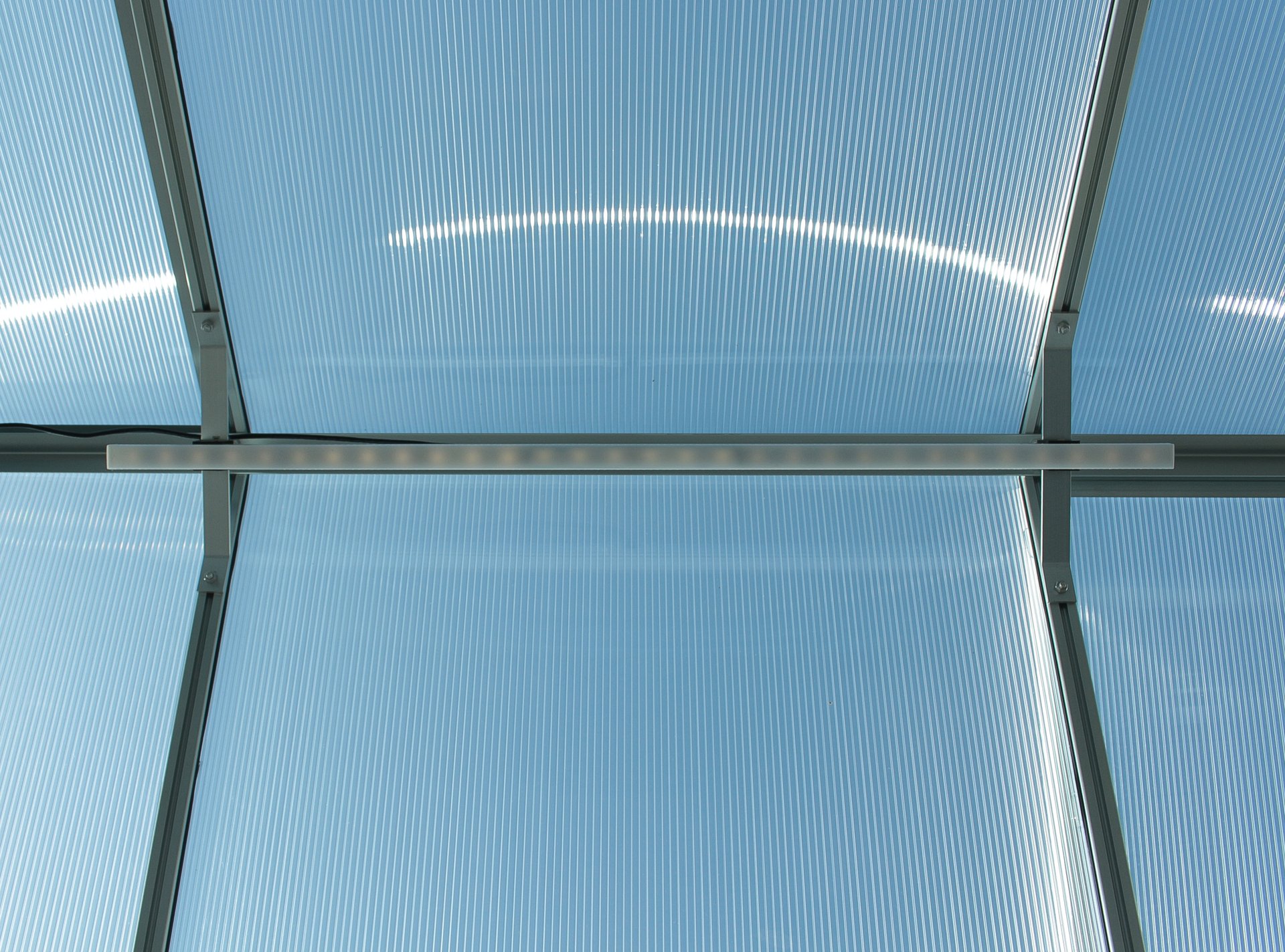 Der selbststehende Aluminium-Tisch von Vitavia ist mit einer oder zwei Ebenen ausgestattet. Der Rahmen besteht aus eloxiertem Aluminium oder bei den farbigen Varianten aus pulverbeschichtetem Aluminium. Je nach Wahl erfolgt die Lieferung mit oder ohne die 16 mm starke Hohlkammerplatte aus Polycarbonat.