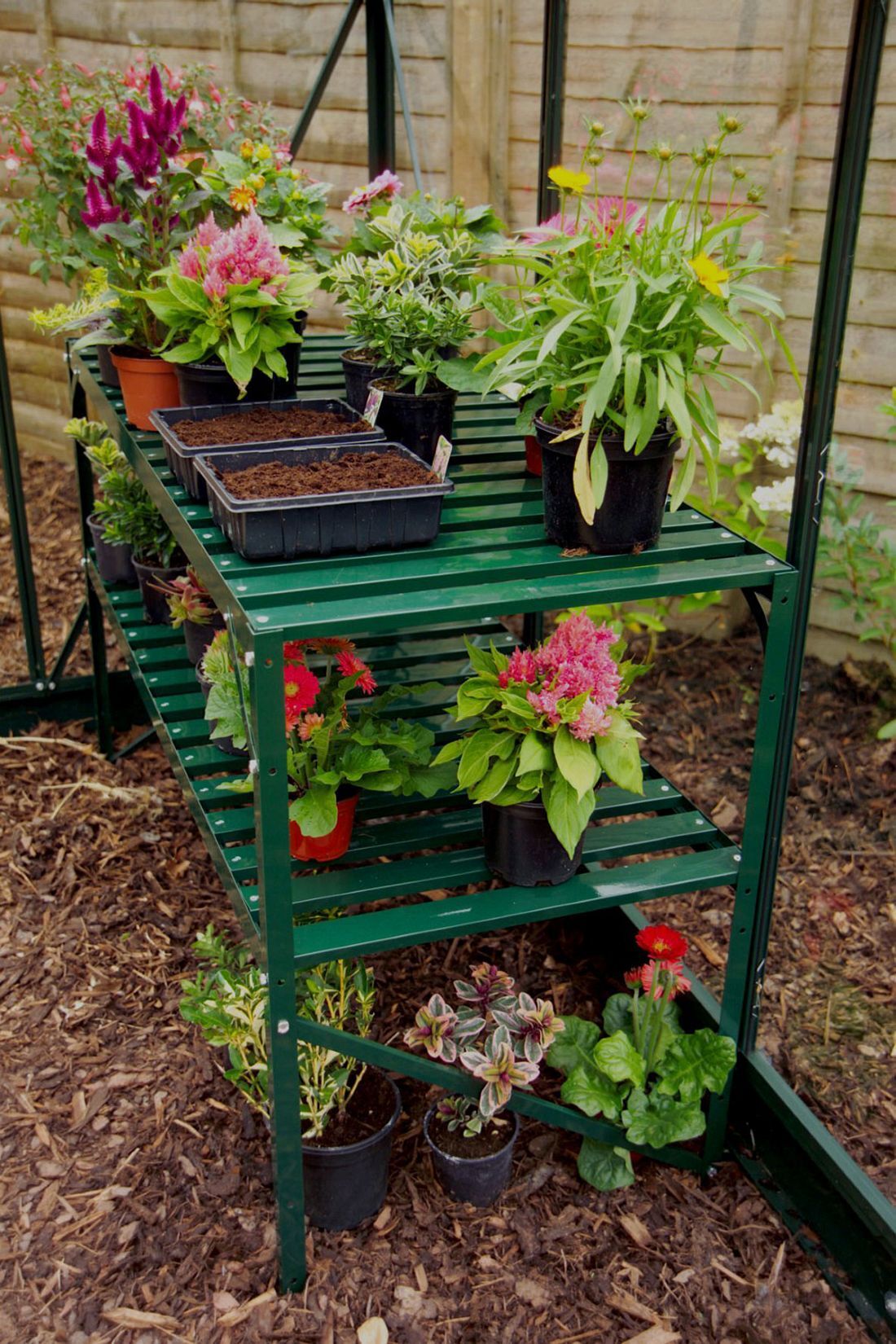 Der selbststehende Aluminium-Tisch von Vitavia ist mit einer oder zwei Ebenen ausgestattet. Der Rahmen besteht aus eloxiertem Aluminium oder bei den farbigen Varianten aus pulverbeschichtetem Aluminium. Je nach Wahl erfolgt die Lieferung mit oder ohne die 16 mm starke Hohlkammerplatte aus Polycarbonat.