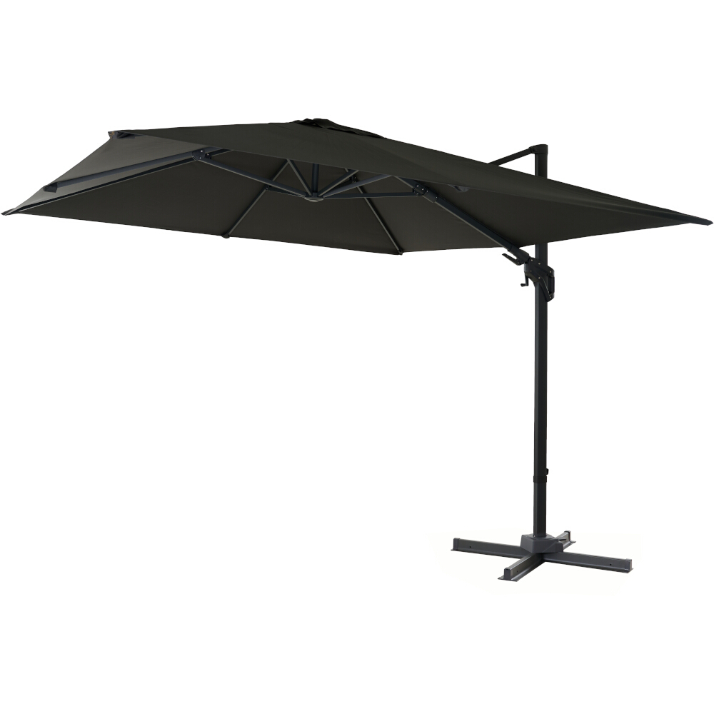 Bei einer Größe von 300 x 300 cm sorgt der ELIO N+ Ampelschirm für einen angenehmen Schattenplatz an schönen Sommertagen und bietet eine perfekte Mischung aus Standfestigkeit und Beweglichkeit: Er ist bereits mit einem Stahlkreuz ausgestattet, ist stufenlos neigbar und bietet eine stufenlose Rotation um 360°, sodass er beidseitig schwenkbar ist. Der robuste Bezug aus 200 g/m² Polyester in anthrazit ist mit einer PA-Beschichtung ausgestattet und ist besonders pflegeleicht sowie wassser- und schmutzabweisend.