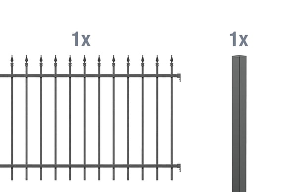 1 Zaunfeld Chaussee, Aluminium, anthrazit, 2000×1000, 1 Zaunpfosten Chaussee, Circle, Aluminium, anthrazit, zum Einbetonieren51x51/1500
