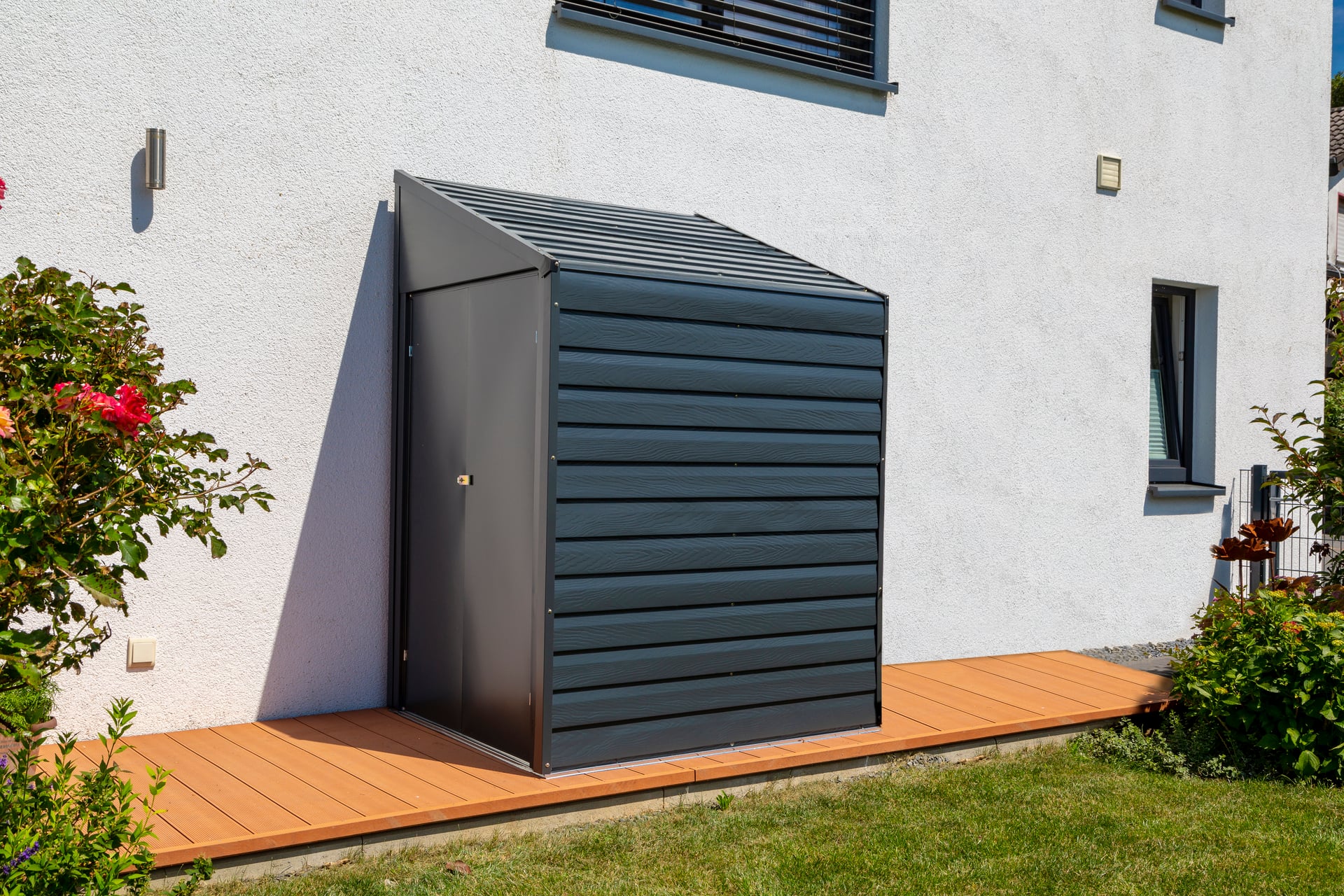 Dieses stilvolle Anlehngerätehaus vom amerikanischen Hersteller Spacemaker ist eine