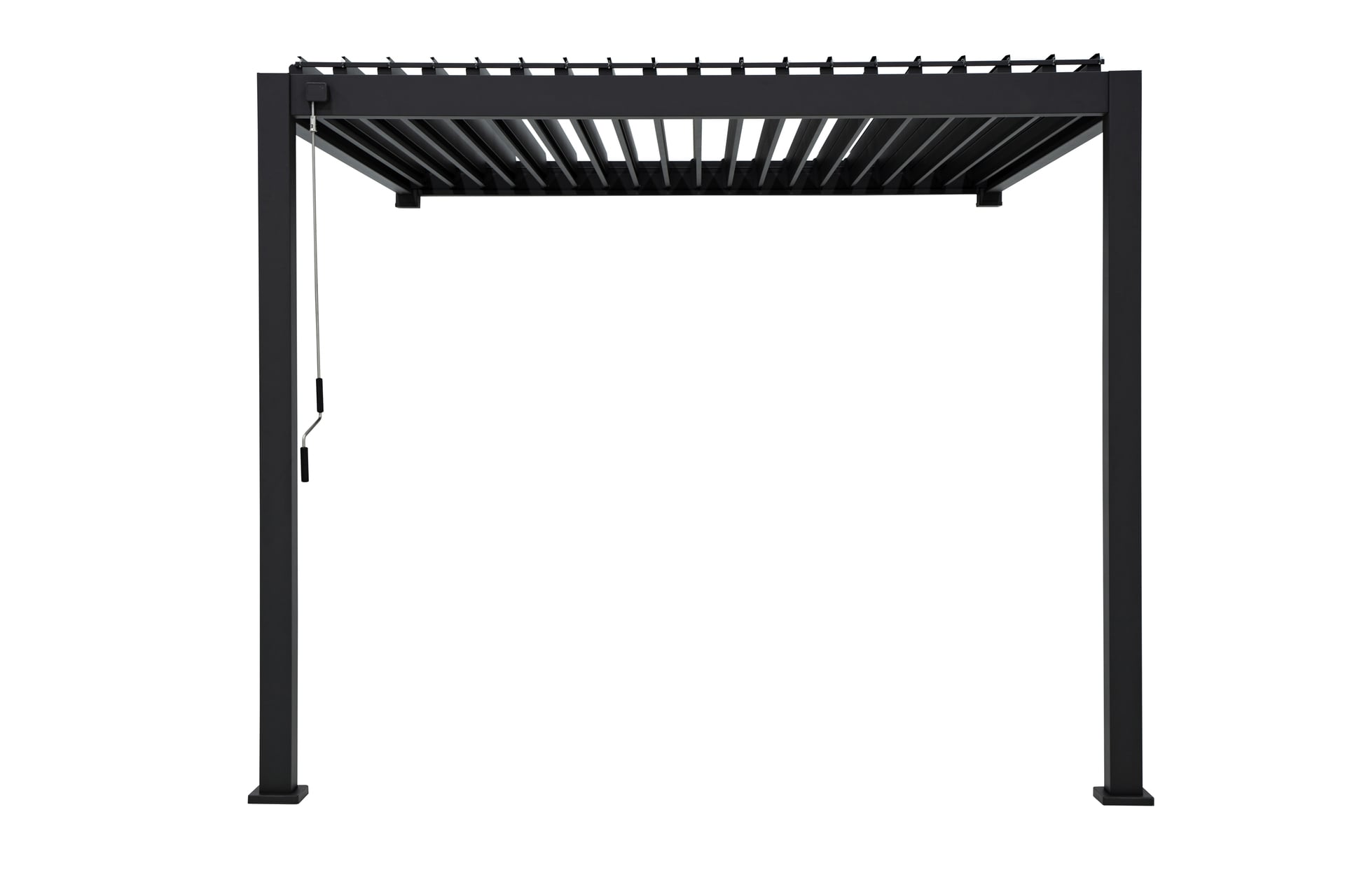 Die kippbaren Lamellen bieten viele Schutzmöglichkeiten gegen Sonne, Regen und Wind. Auf diese Weise haben Sie durch die leicht bedienbaren Lamellen die Wahl, in der Sonne oder im Schatten zu sitzen. Aber auch bei regnerischem Wetter bleiben Sie durch das kippbare Dach trocken.