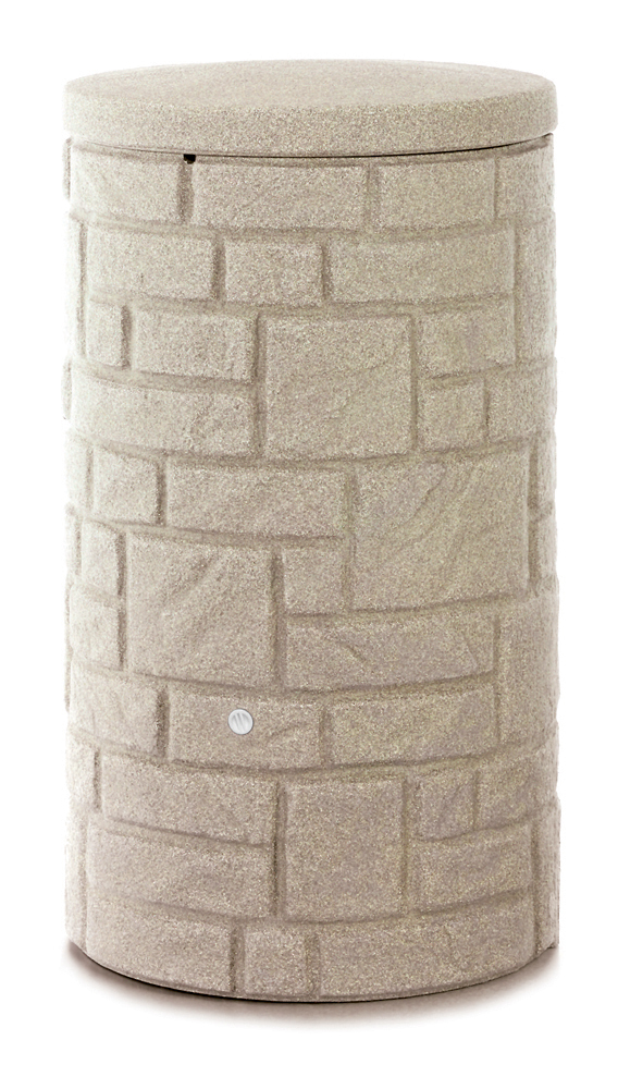 Diese Regentonne überzeugt durch ihre naturgetreue Nachbildung einer Natursteinsäule oder eines kleinen gemauerten Brunnen. Sie kann optional auch bepflanzt werden und passt sich dadurch harmonisch jeder Jahreszeit an. Der Zulauf ist seitlich an der Oberkante.