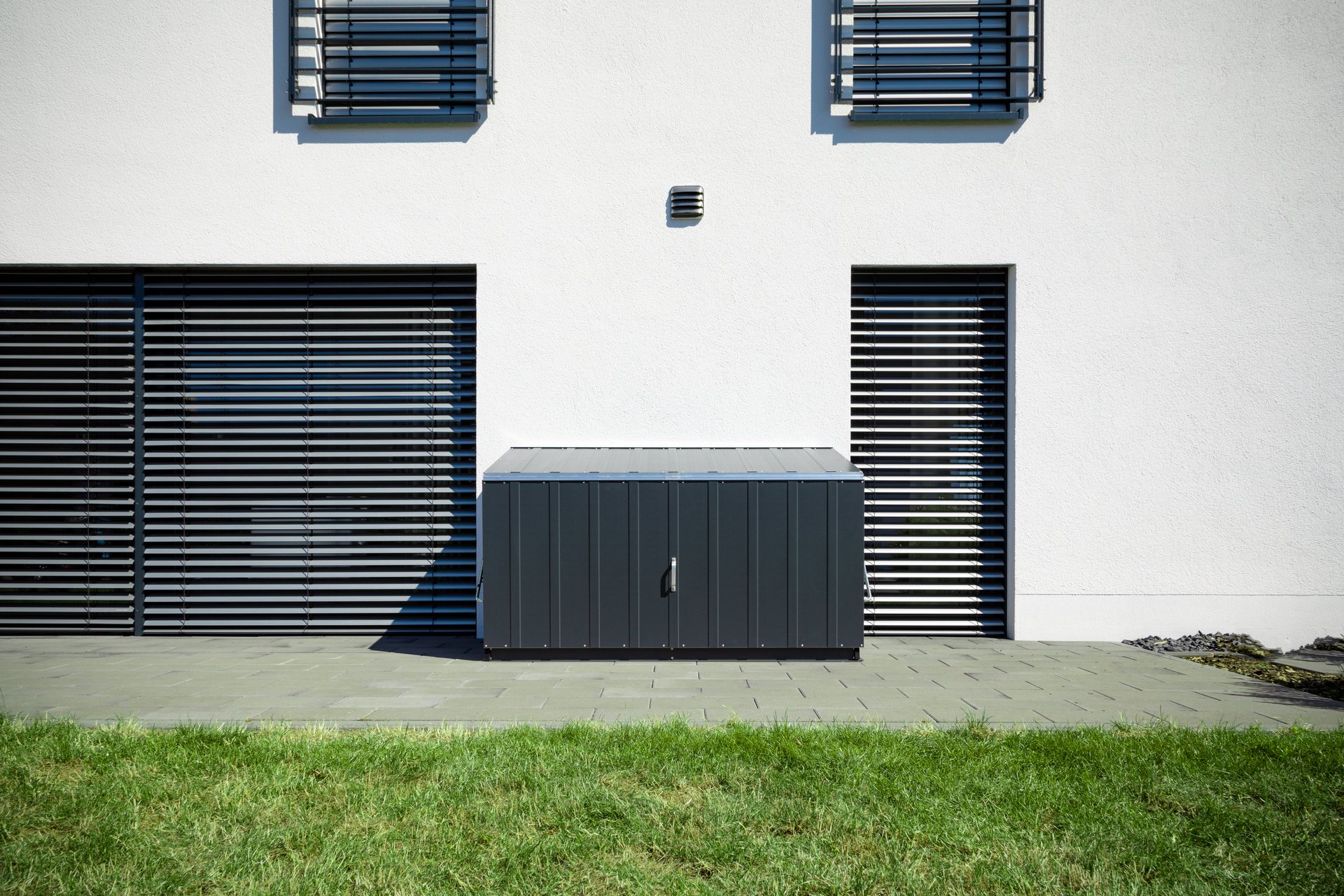 Unsere Trimetals Aufbewahrungs- und Fahrradboxen bieten sicheren und universellen Stauraum zur Lagerung von Fahrrädern und Gartengeräten.