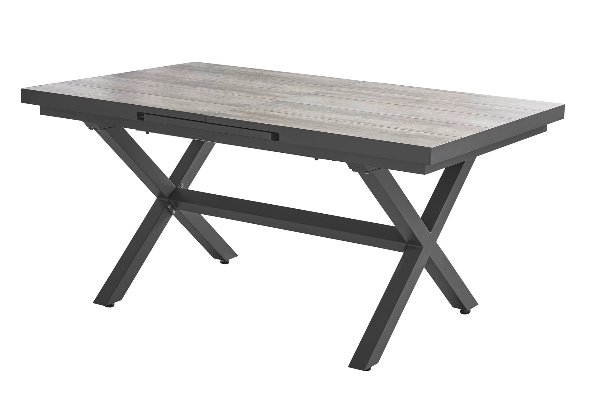 Entdecken Sie den Sanogo Ausziehtisch – die perfekte Kombination aus Eleganz und Funktionalität für Ihren Außenbereich! Mit seinem pulverbeschichteten Alu-Gestell in mattem Anthrazit und den stilvollen Keramik-Leisten in Grey-Beige ist dieser Tisch nicht nur ästhetisch ansprechend, sondern auch äußerst robust und wetterbeständig. Die Ausziehfunktion ermöglicht es Ihnen, die Tischfläche von 160 cm auf beeindruckende 210 cm zu erweitern, um mehr Gäste willkommen zu heißen. Genießen Sie stilvolle Mahlzeiten und gesellige Momente im Freien mit dem Sanogo Ausziehtisch.