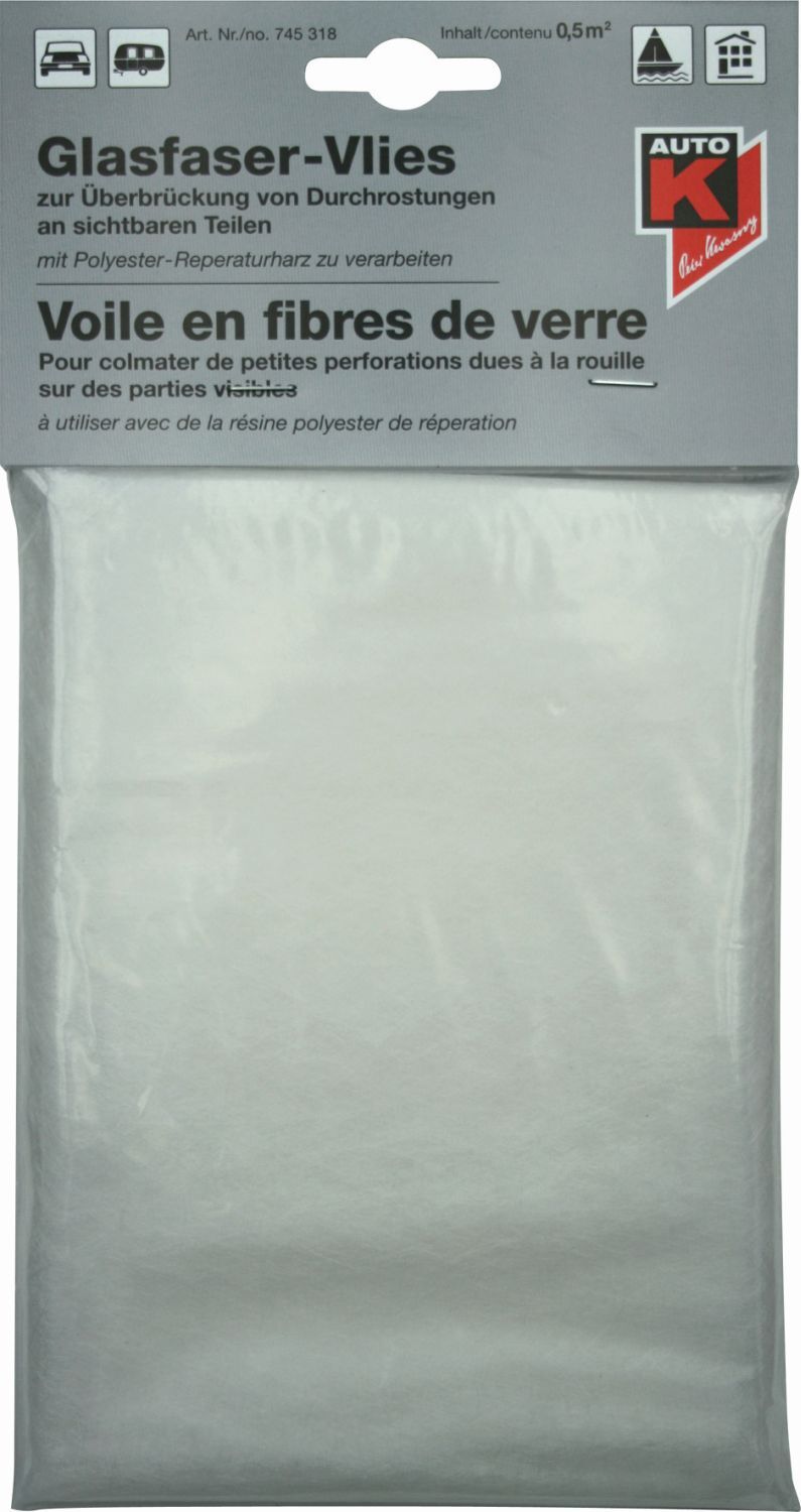 Auto-K Glasfaser-Vlies ist ideal für die Beschichtung der Blechaußenseite bei der Reparatur von Durchrostungen, Rissen, Löchern und Hohlräumen.