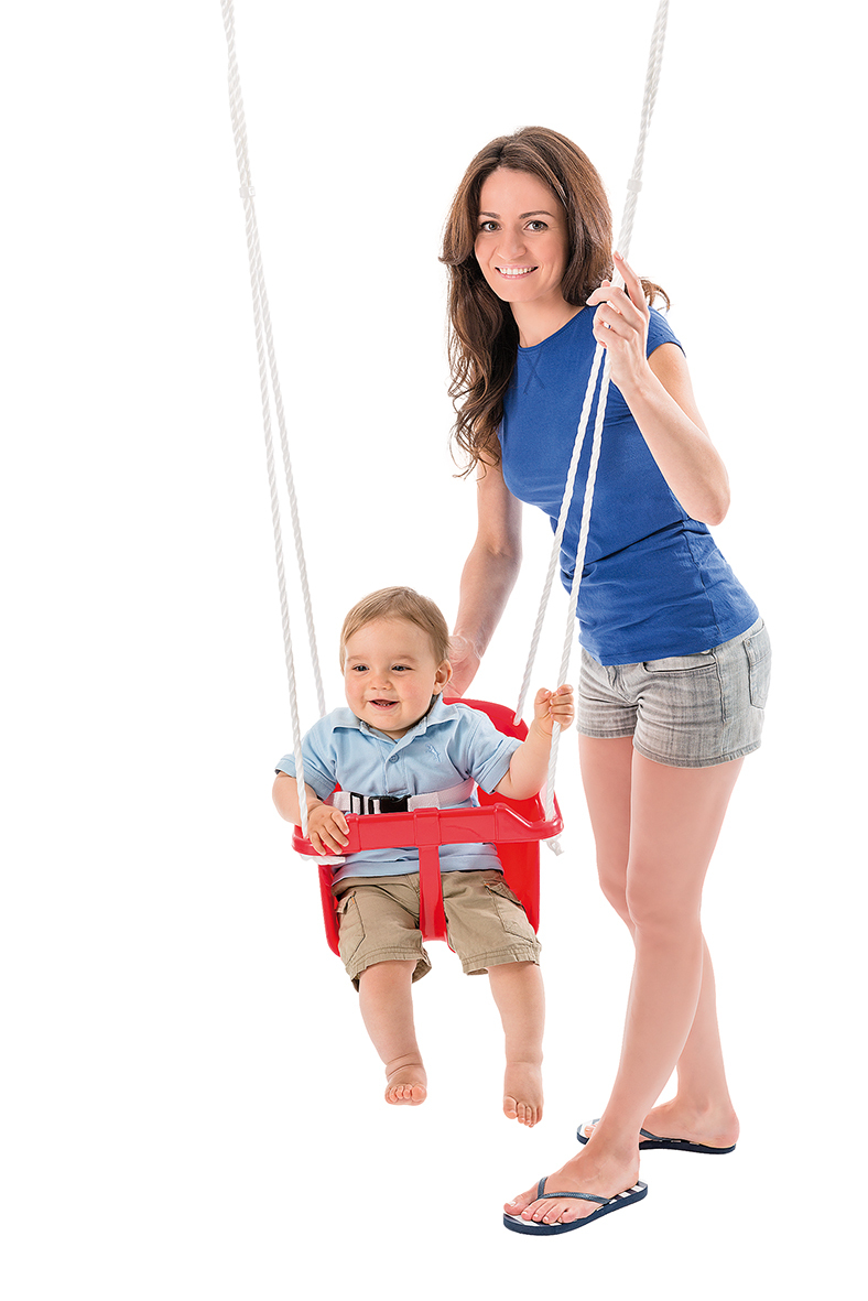 Baby-Schaukel aus Kunststoff, ca. 36x31x26 cm, 40 kg Trag- kraft, Seil: Ø ca. 10 mm, Länge einstellbar, Kinder bis max. 150 cm, TÜV/GS geprüft