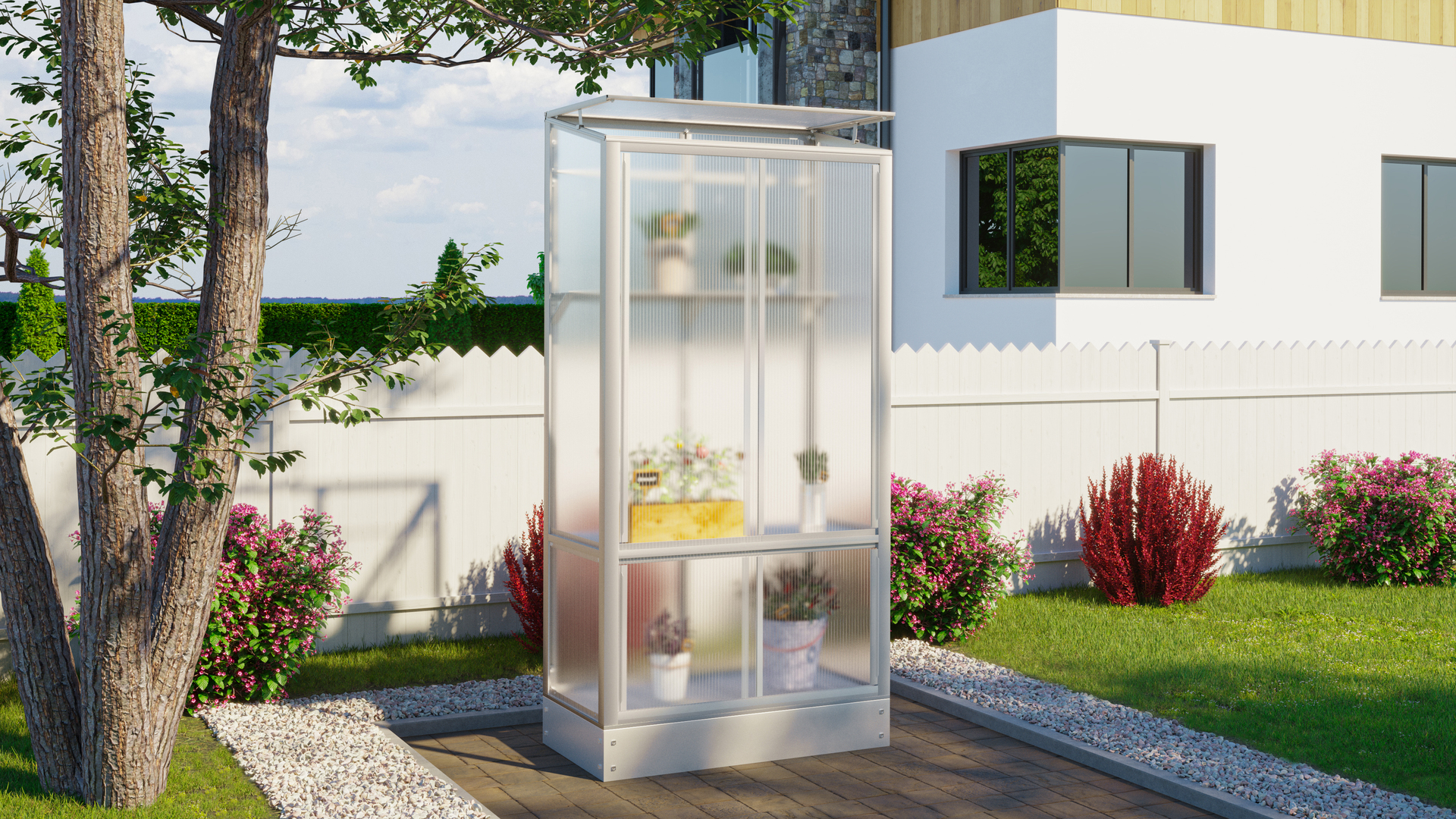 Das Stad verschönert wahlweise voll verglast mit kristallklarem Sicherheitsglas (ESG) Ihren Balkon oder bietet mit den gut isolierenden Hohlkammerplatten (HKP 4 mm) eine verlängerte Anbauzeit in Ihrer kleinen Oase mittendrin. Scheiben wie Platten sind klammerfrei eingefasst in filigrane und gleichzeitig robuste Alu-Profile – für viele grüne Sommer auch mitten in der Stadt.