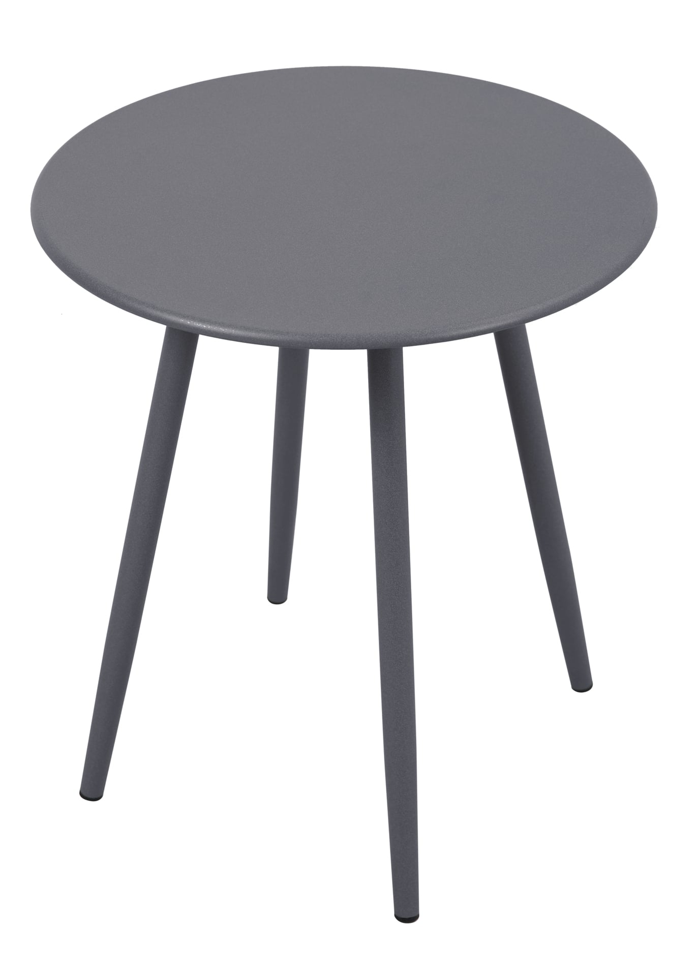 Beistelltisch aus Stahl rund, Oberfläche hellgrau pulverbeschichtet.