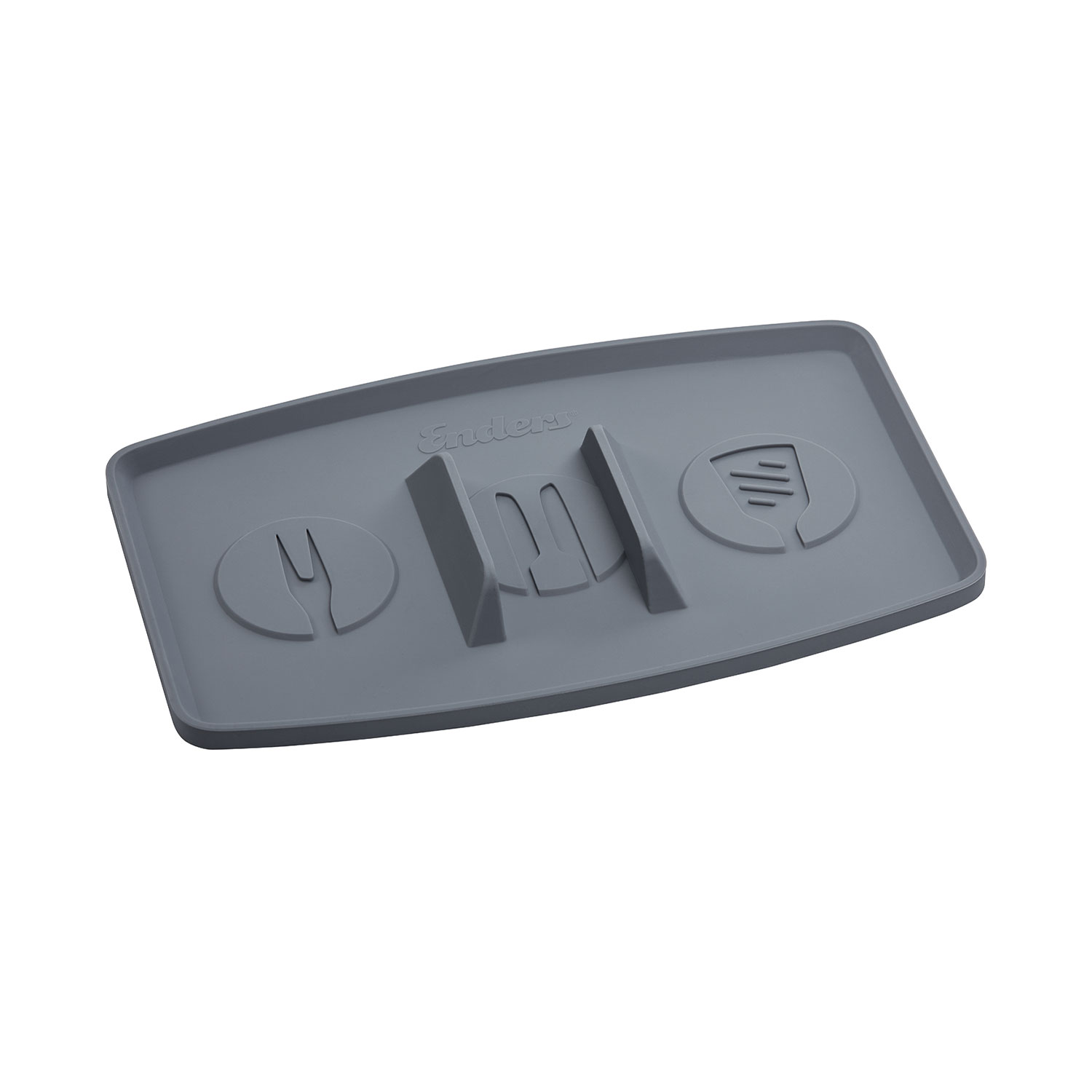 Besteckablage aus Silikon Die Ablage aus Silikon ist der praktische Helfer für benutztes verschmutztes Grillbesteck während des Grillvorgangs. Sie kann auf der Seitenablage deines Grills oder anderen ebenen Untergründen positioniert werden. Dort saugt sie sich fest, sodass ein Verrutschen verhindert wird. Grillzangen ohne Verschluss können durch die besondere Form der Ablage in diese platzsparend eingespannt werden. Dank des Silikons ist die Ablage hitzebeständig und leicht abwaschbar.