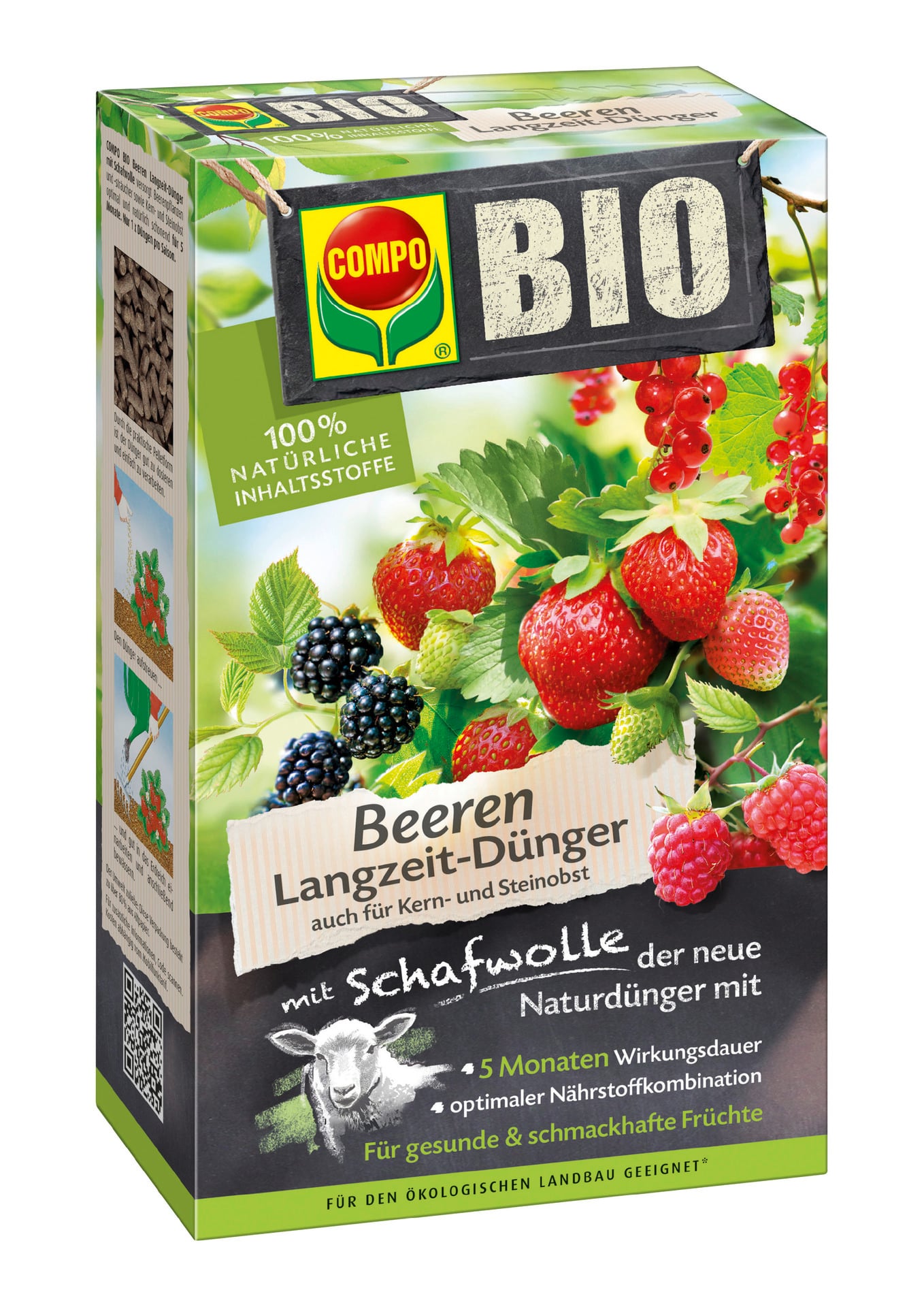 – einzigartiger, rein organischer Naturdünger für alle Beerenpflanzen und -sträucher, sowie Kern- und Steinobst