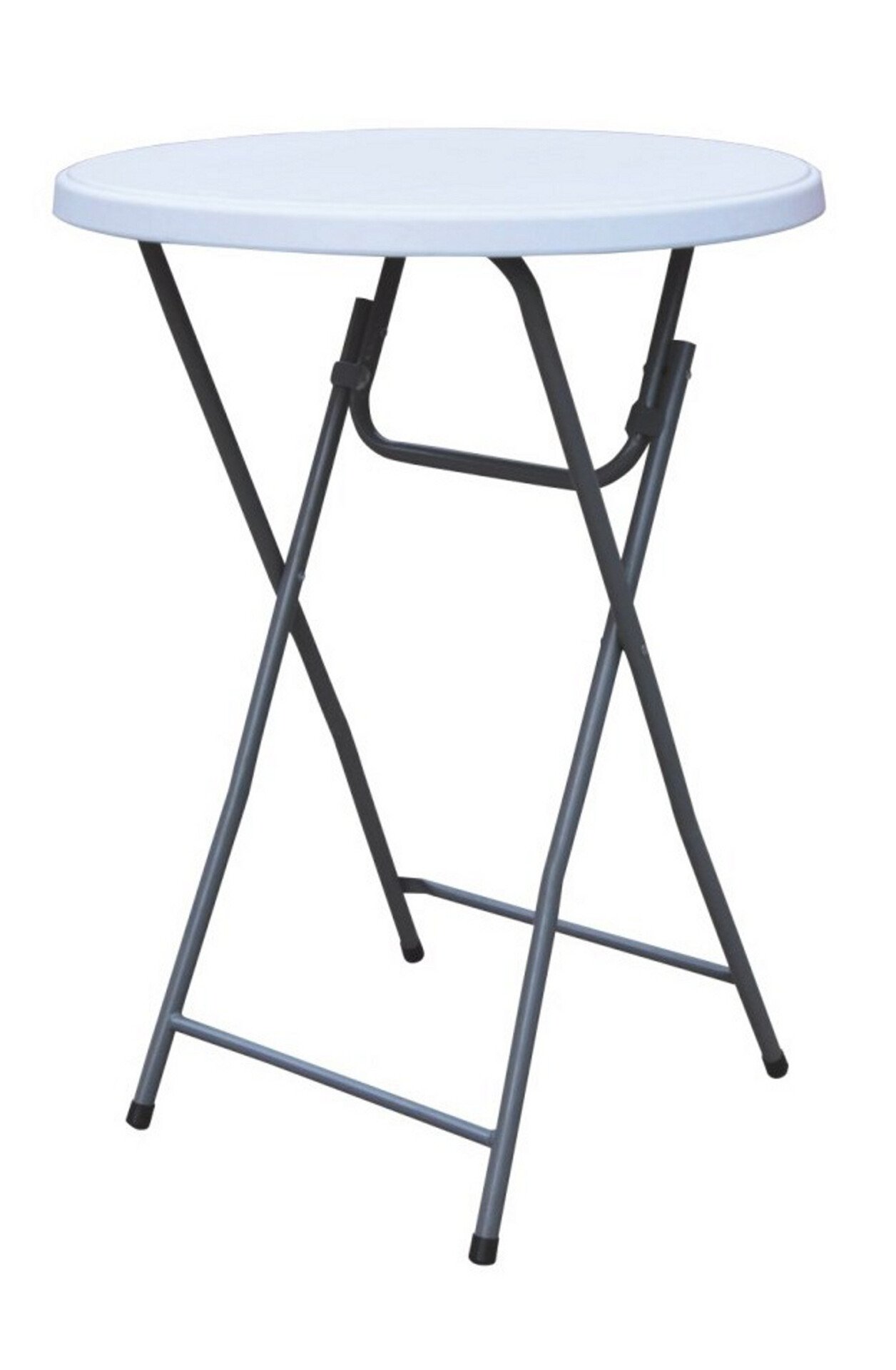 Bis zu 4 Personen finden am Stehtisch mit seinem Durchmesser von 80 cm Platz. Das stabile pulverbeschichtete Gestell ist sehr robust und langlebig. Der einfach Klappmechanismus ermöglicht einen schnellen und kinderleichten Auf- bzw. Abbau. Zusammengeklappt lässt sich unser Stehtisch leicht verstauen und transportieren. Die starke und extra verstärkte Tischplatte hält auch den schwersten Gast beim Aufstützen aus. An den Füßen unseres Bistro-Stehtisches finden Sie außerdem praktische Abdeckkappen, die Kratzer auf Parkett, Laminat, Fließen oder Terrasse verhindern. Der Bistro-Stehtisch ist für Innen und Außen geeignet und wird der passenden Husse (Artikel 2331117) zum eleganten Tisch für jede Festlichkeit.