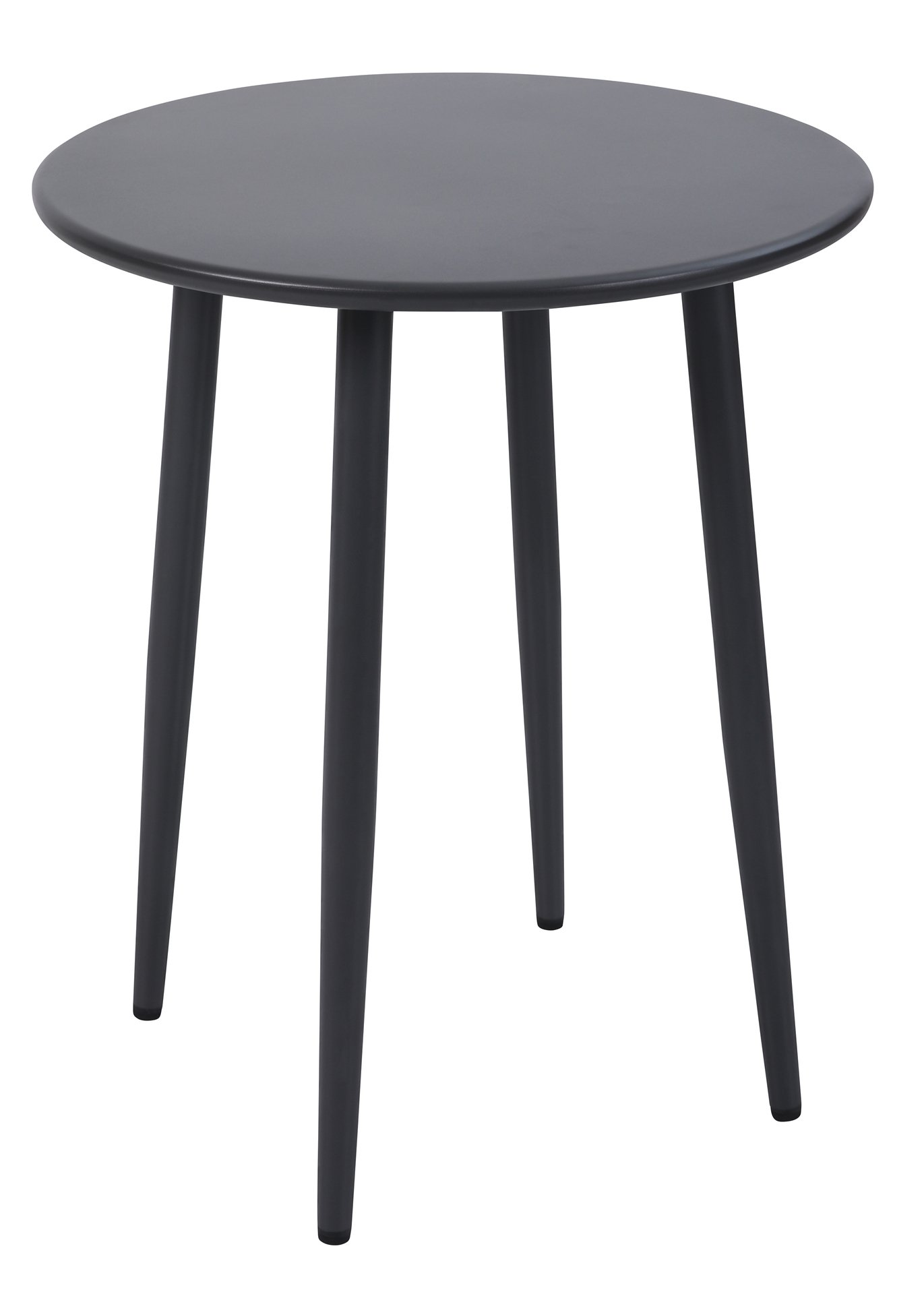 Bistrotisch aus Stahl rund, Oberfläche dunkelgrau pulverbeschichtet.