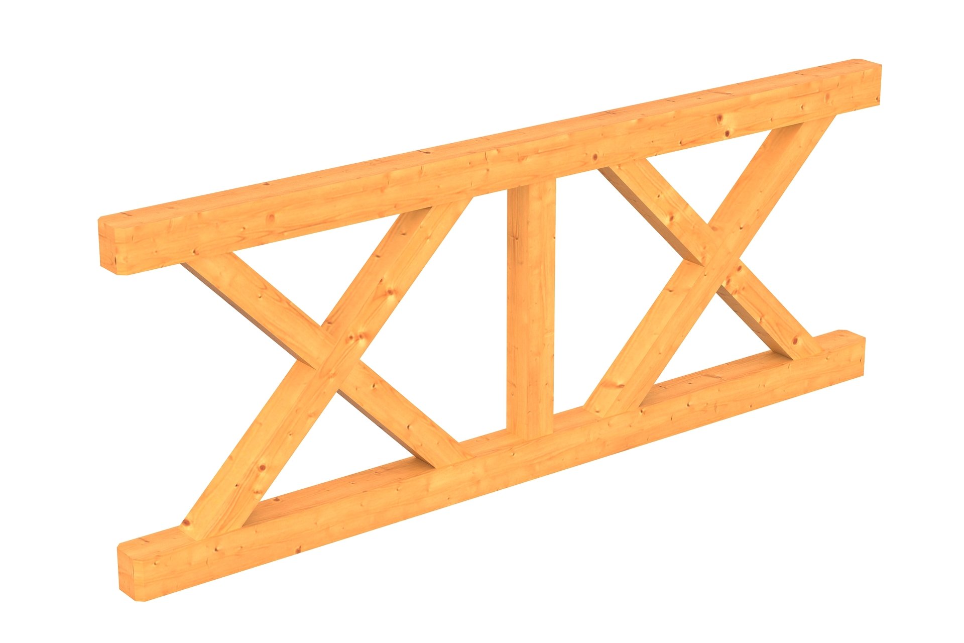 Die dekorative SKAN HOLZ Brüstung mit massiven Andreaskreuzen Douglasie eignet sich für SKAN HOLZ Terrassenüberdachungen aus Douglasie mit einem Pfostenabstand von 220 cm.