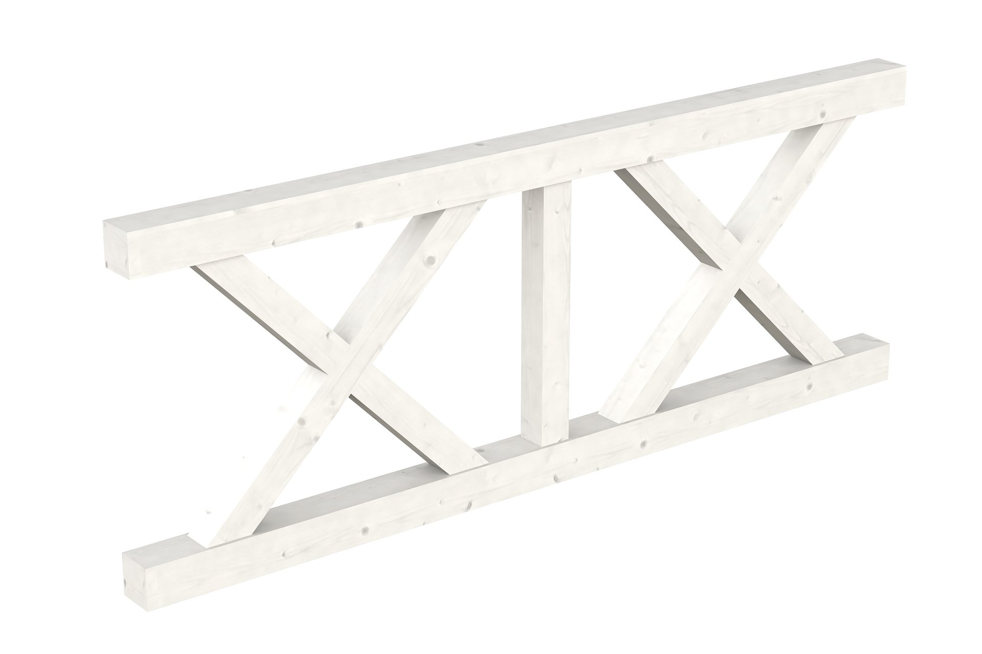 Die dekorative SKAN HOLZ Brüstung mit massiven Andreaskreuzen aus Konstruktionsvollholz eignet sich für SKAN HOLZ Terrassenüberdachungen aus Leimholz mit einem Pfostenabstand von 220 cm.