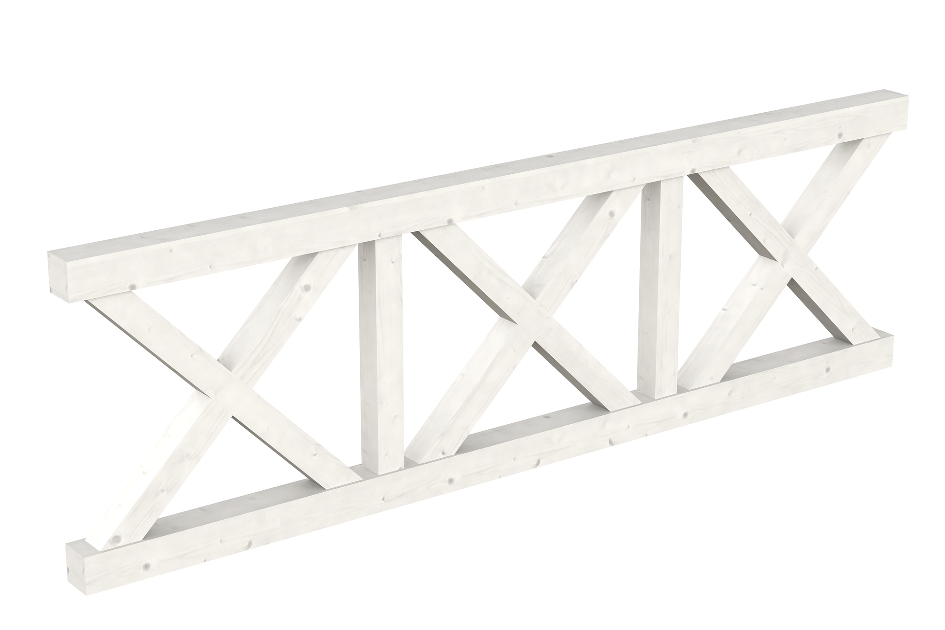 Die dekorative SKAN HOLZ Brüstung mit massiven Andreaskreuzen aus Konstruktionsvollholz eignet sich für SKAN HOLZ Terrassenüberdachungen aus Leimholz mit einem Pfostenabstand von 270 cm.