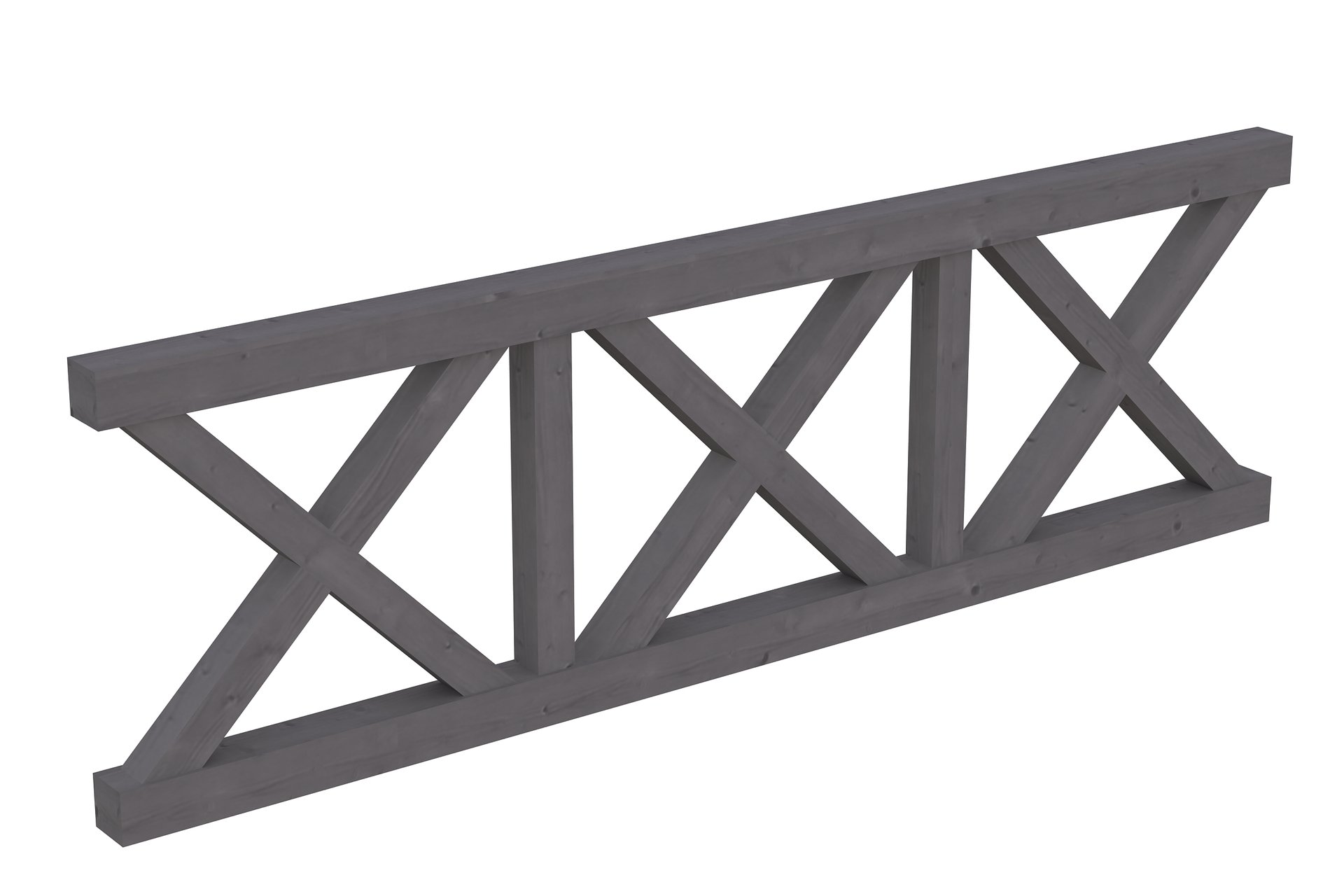 Die dekorative SKAN HOLZ Brüstung mit massiven Andreaskreuzen aus Konstruktionsvollholz eignet sich für SKAN HOLZ Terrassenüberdachungen aus Leimholz mit einem Pfostenabstand von 270 cm.