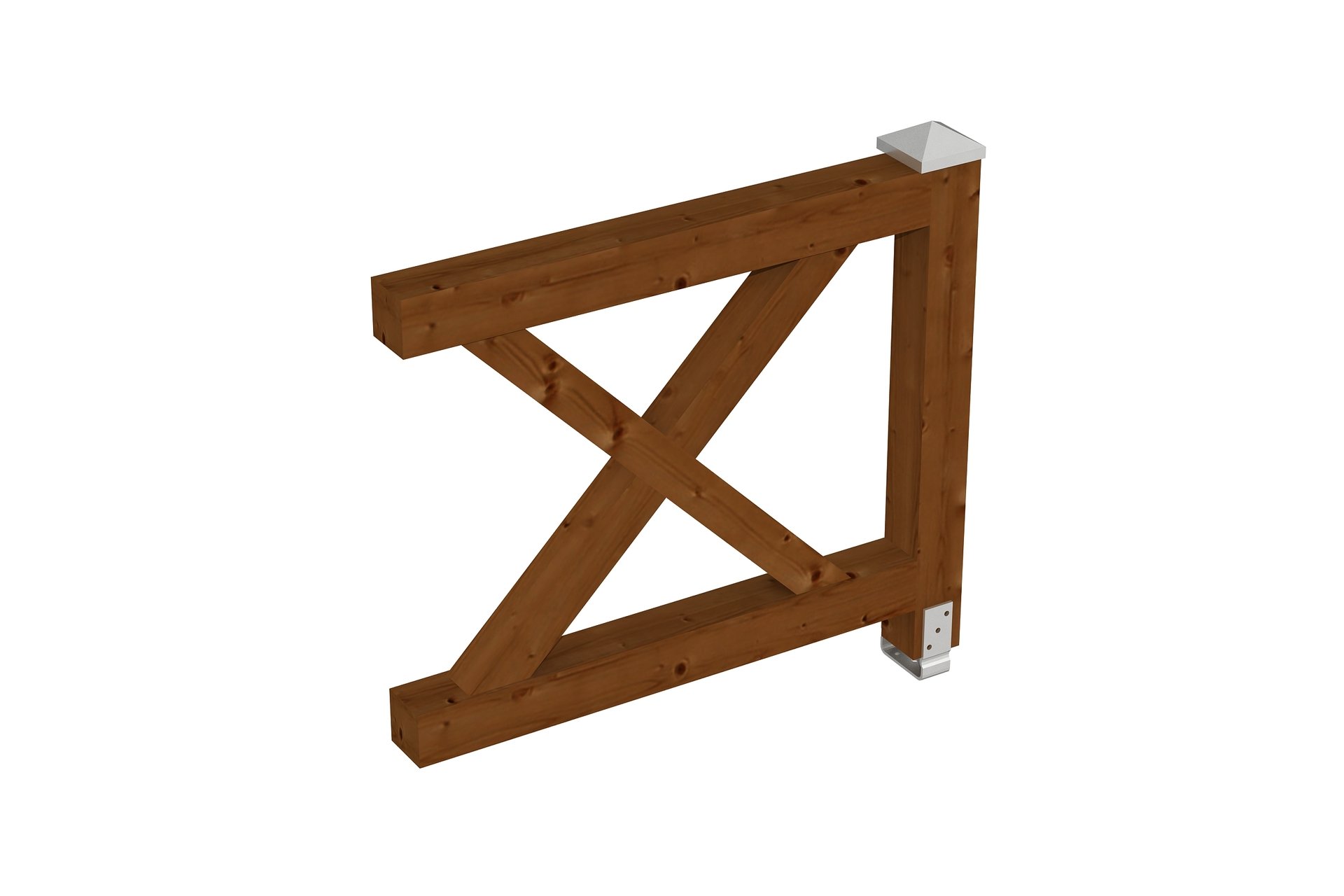 Die dekorative SKAN HOLZ Brüstung mit massiven Andreaskreuzen aus Konstruktionsvollholz eignet sich für SKAN HOLZ Pavillons aus Leimholz mit einem Pfostenabstand von mindestens 270 cm.