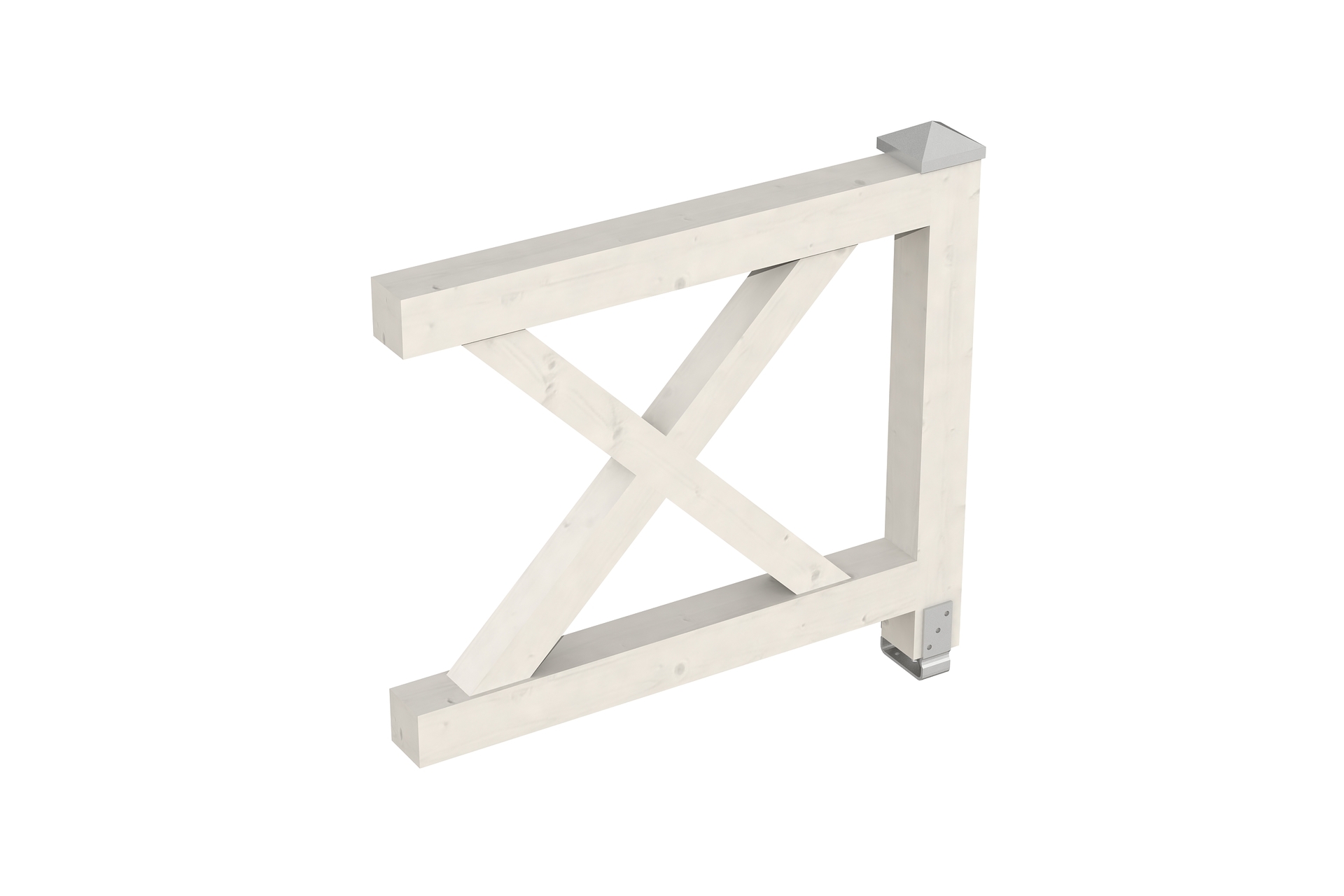 Die dekorative SKAN HOLZ Brüstung mit massiven Andreaskreuzen aus Konstruktionsvollholz eignet sich für SKAN HOLZ Pavillons aus Leimholz mit einem Pfostenabstand von mindestens 270 cm.