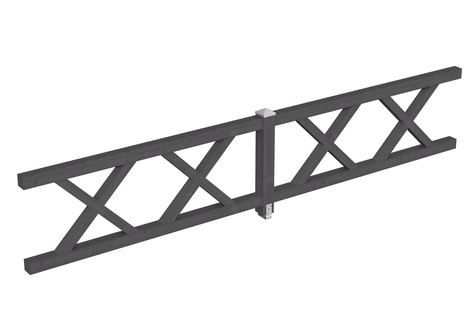 Die dekorative SKAN HOLZ Brüstung mit massiven Andreaskreuzen aus Konstruktionsvollholz eignet sich für SKAN HOLZ Pavillons aus Leimholz mit einem Pfostenabstand von 465 cm.