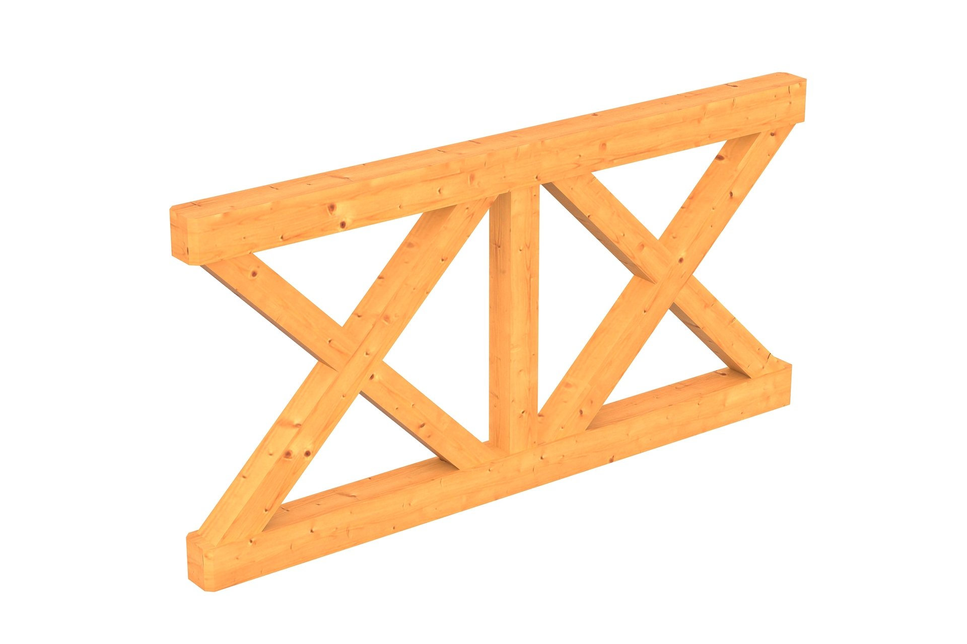 Die dekorative SKAN HOLZ Brüstung mit massiven Andreaskreuzen Douglasie eignet sich für SKAN HOLZ Terrassenüberdachungen aus Douglasie mit einem Pfostenabstand von 170 cm.
