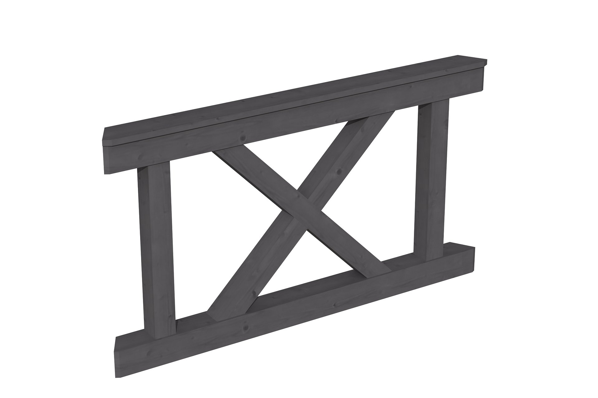 Die dekorative SKAN HOLZ Brüstung mit massiven Andreaskreuzen aus Konstruktionsvollholz eignet sich für das SKAN HOLZ Pavillon Nancy 2 / Versailles 2.