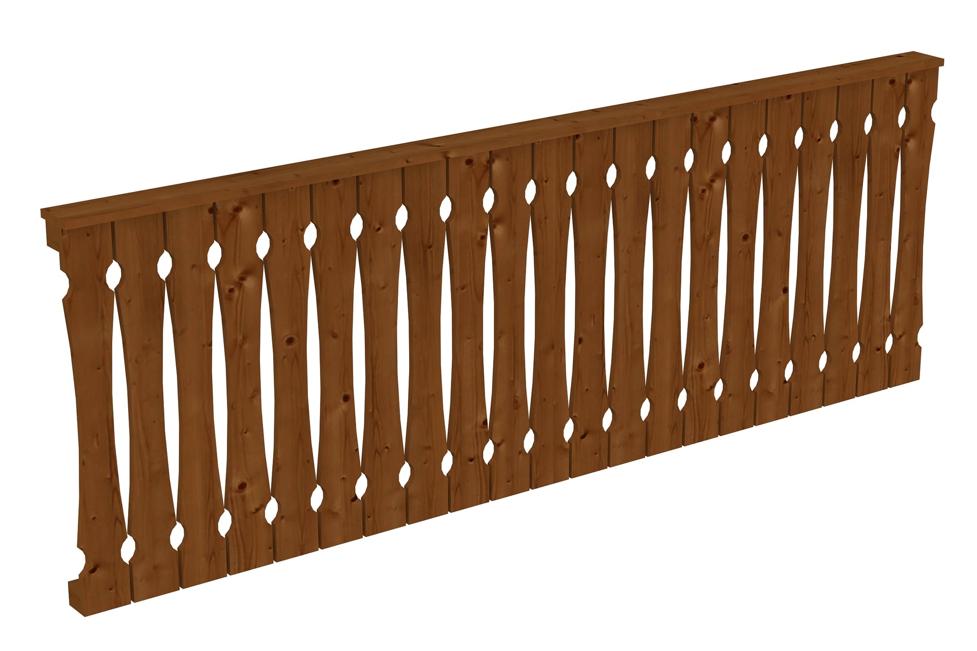 Die dekorative SKAN HOLZ Brüstung aus Balkonschalung eignet sich für SKAN HOLZ Terrassenüberdachungen und Pavillons aus Leimholz mit einem Pfostenabstand von 270 cm.