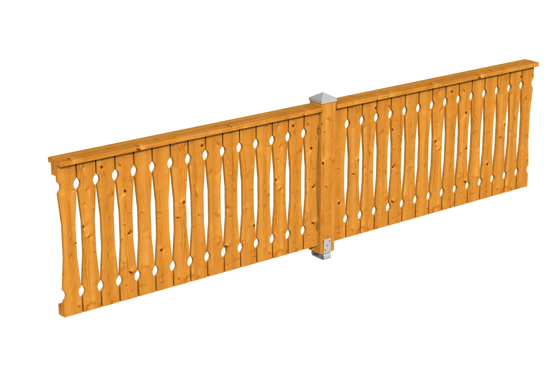 Die dekorative SKAN HOLZ Brüstung aus Balkonschalung eignet sich für SKAN HOLZ Terrassenüberdachungen und Pavillons aus Leimholz mit einem Pfostenabstand von 400 cm.