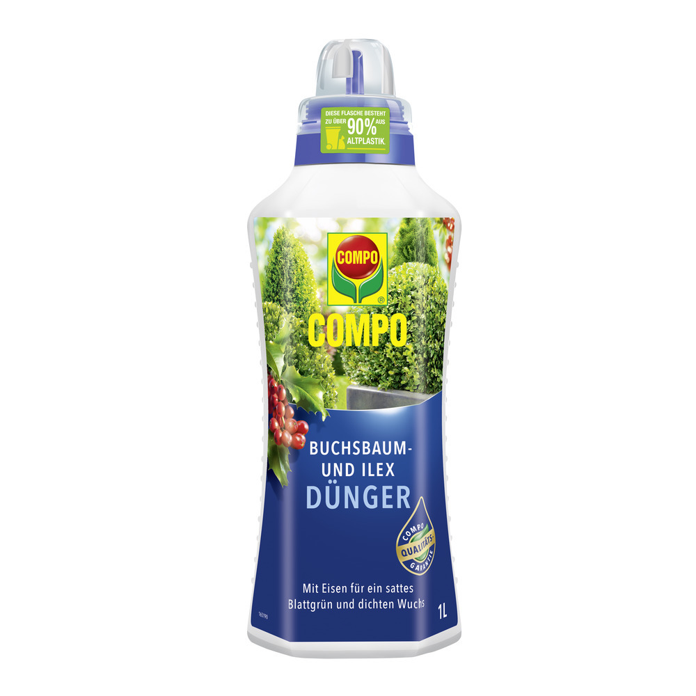 – mineralischer Spezial-Flüssigdünger für alle Buchsbäume, Stechpalmen (Ilex) und andere immergrüne Gewächse auf Balkon, Terrasse und im Garten