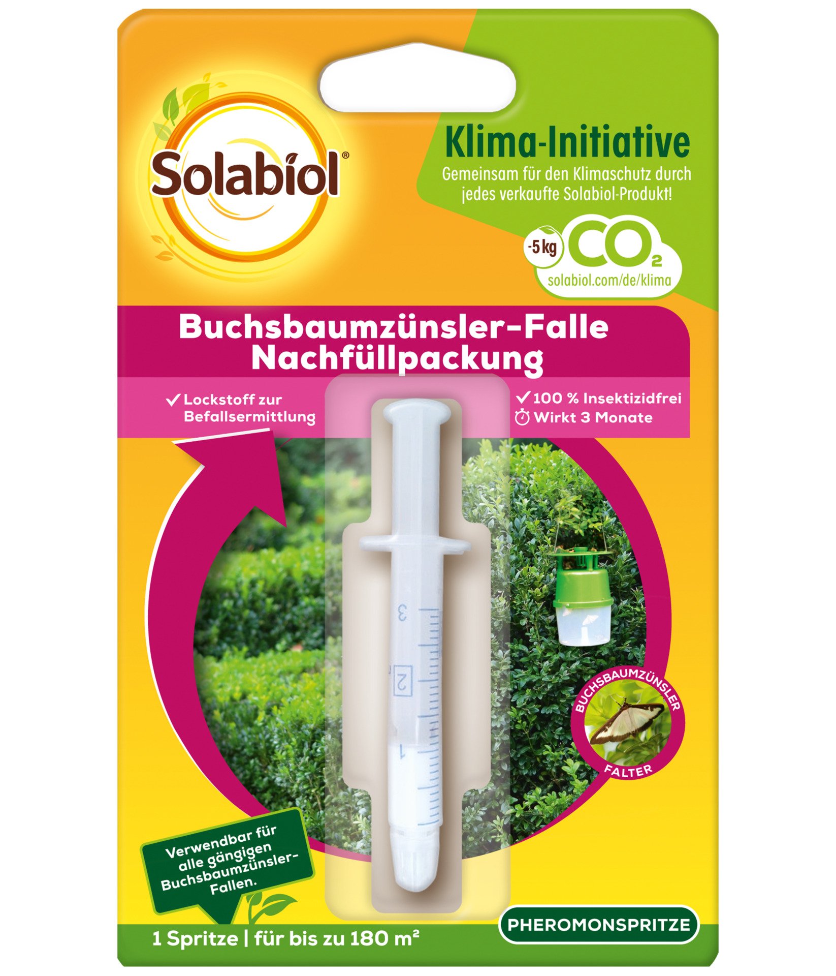 Ein sauberes und schnelles Nachfüllen der Solabiol® Buchsbaumzünsler-Falle wird durch die praktische Nachfüll-Pheromonspritze gewährleistet. Das Pheromongel lässt sich zur Nachfüllung aller auf dem Markt befindelichen Fallen nutzen.Ein sauberes und schnelles Nachfüllen der Solabiol®Buchsbaumzünsler-Falle wird durch die praktische Nachfüll-Pheromonspritze gewährleistet.
