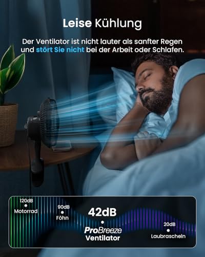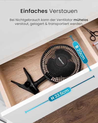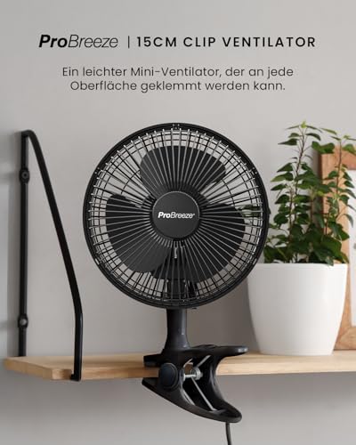 Pro Breeze Mini Ventilator mit Clip, 20 cm Durchmesser, 2 Geschwindigkeitsstufen, stabiler Clip - Ventilator leise, ideal als Tischventilator am...
