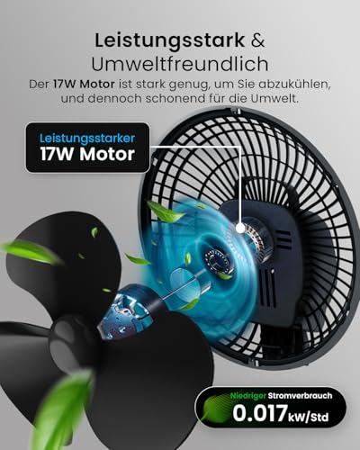 Hochwertiger Grow Clip-Ventilator EC-Motor, 10 Geschwindigkeitsstufen, 250 cm Kabel, Umluftventilator leise für Zelt, 20cm Durchmesser, 10W, 560 m3/h...
