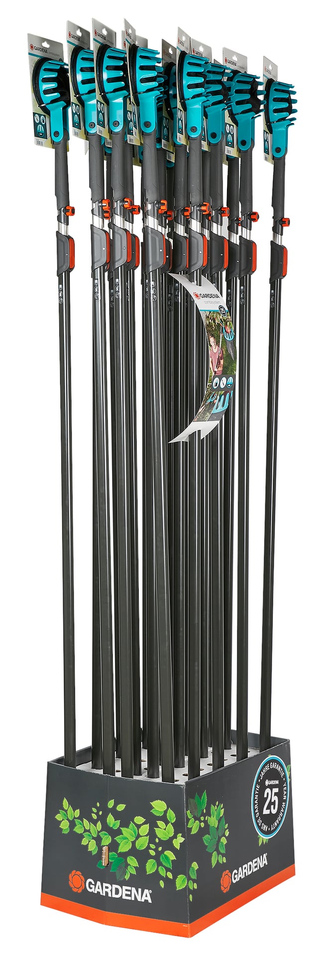 Der combisystem-Obstpflücker eignet sich optimal zum bequemen Pflücken von Obst direkt vom Baum. Durch kleine Zähne zwischen den Kunststoffzinken können auch kleinere Früchte leicht gepflückt werden. Alle Früchte werden in dem robusten Fangbeutel gesammelt, in dem der Inhalt gut sichtbar ist. An niedrigen Bäumen oder weit herabhängenden Ästen erleichtert der Handgriff die komfortable Benutzung auch ohne combisystem-Stiel. Um alle Stellen im Baum mühelos zu erreichen, kann der Arbeitswinkel mit dem Schnellverschluss individuell eingestellt werden. Im Set enthalten ist ein combisystem-Teleskopstiel aus hochwertigem Aluminium. Dieser lässt sich von 210 bis 390 Zentimeter variabel in der Länge einstellen. So erreicht man problemlos eine Arbeitshöhe von bis zu 6 Meter. Ausgezeichnet mit 25 Jahren Garantie.