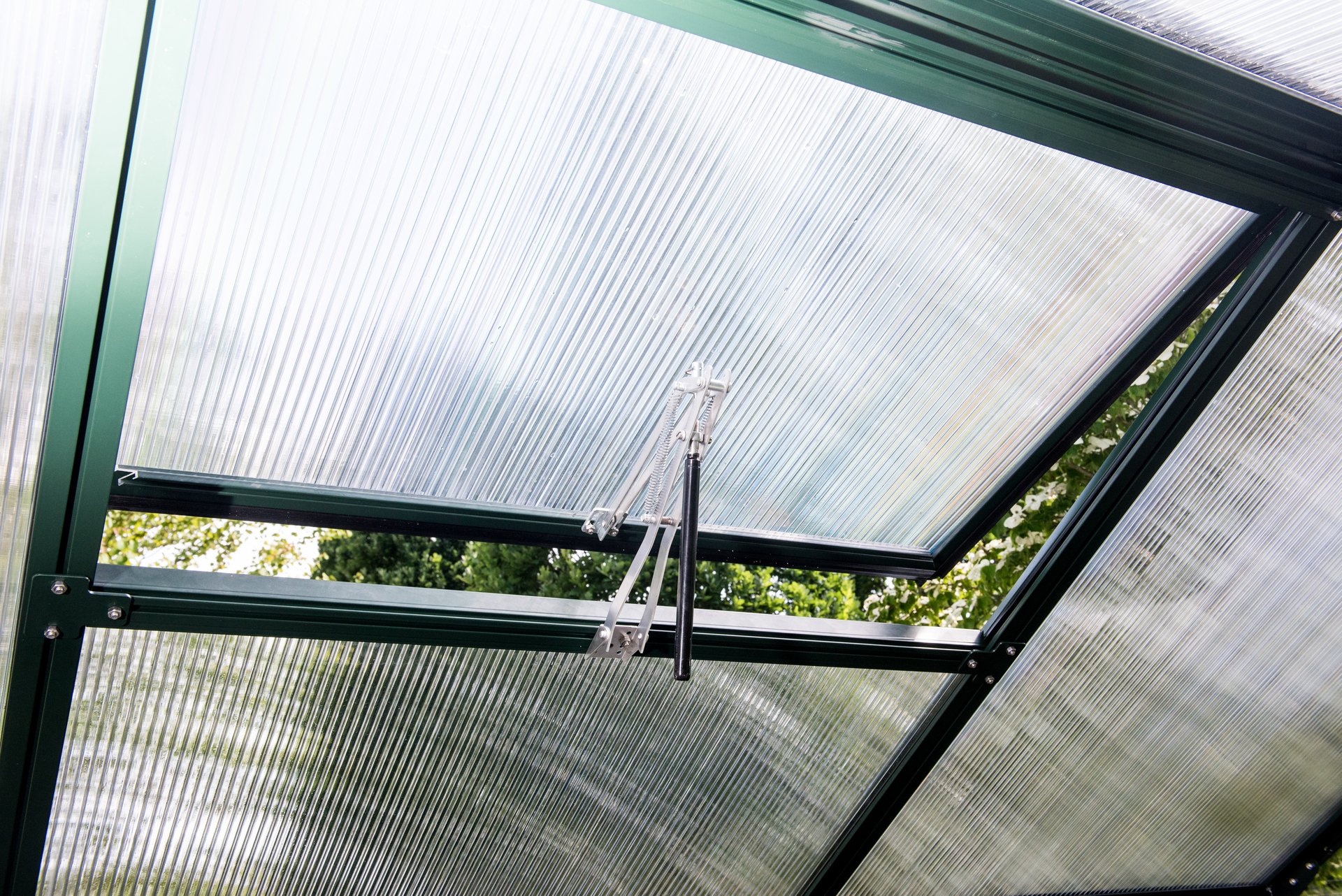 Erweitern Sie die Be- und Entlüftung Ihres Gewächshauses (außer Santini) durch ein oder mehrere zusätzliche Dachfenster. Das zusätzliche Dachfenster ist für verschiedene Modelle und in verschiedenen Farben erhältlich. Der automatische Fensterheber ist im Lieferumfang inbegriffen. Die Verglasung wird bauseits aus der vorhandenen Dachplatte zugeschnitten.
