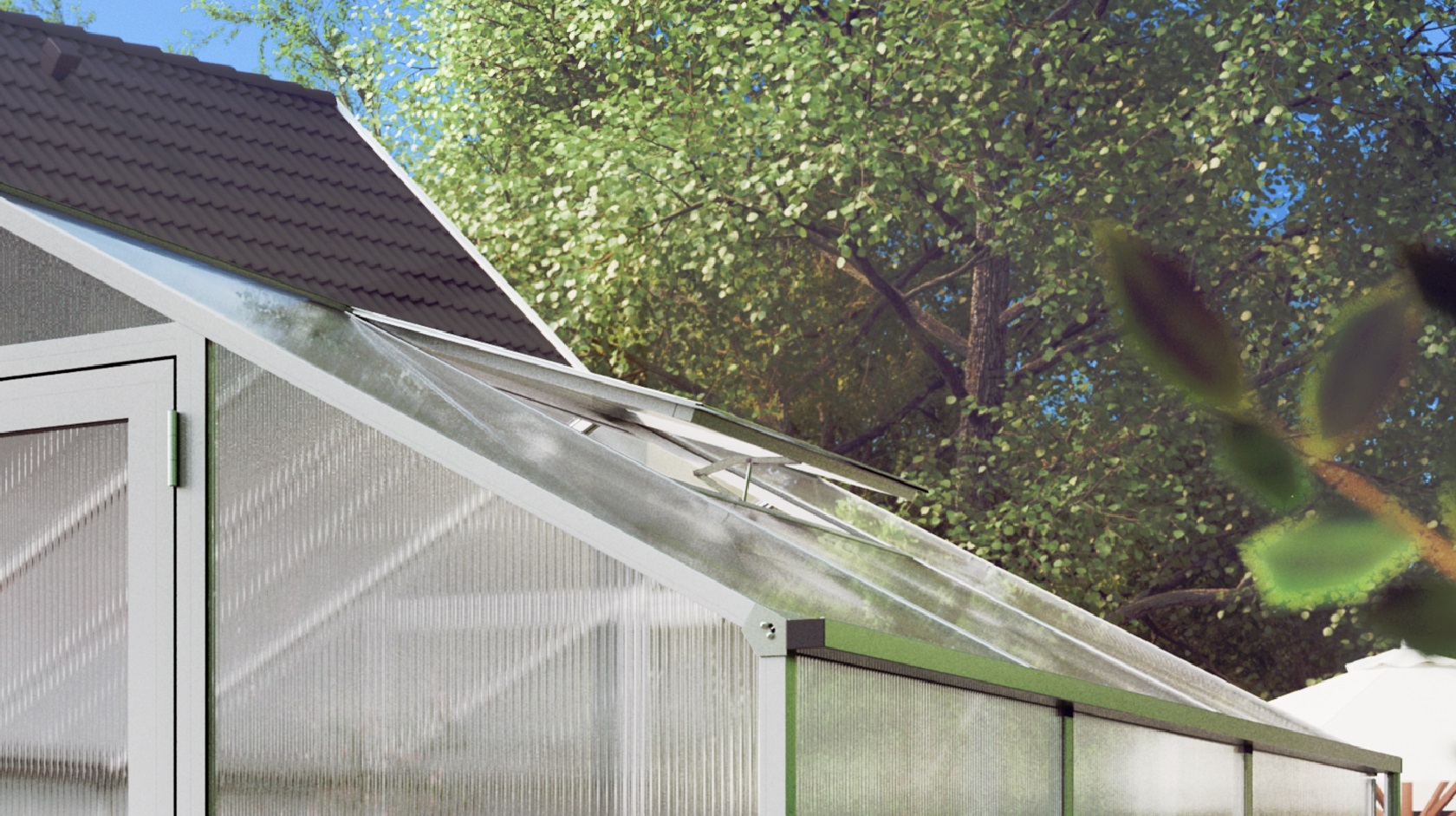 Erweitern Sie die Be- und Entlüftung Ihres Gewächshauses (außer Callas und Rhodo) durch ein oder mehrere zusätzliche Dachfenster. Das zusätzliche Dachfenster ist für verschiedene Modelle und in verschiedenen Farben erhältlich. Der automatische Fensterheber ist im Lieferumfang inbegriffen. Die Verglasung wird bauseits aus der vorhandenen Dachplatte zugeschnitten.