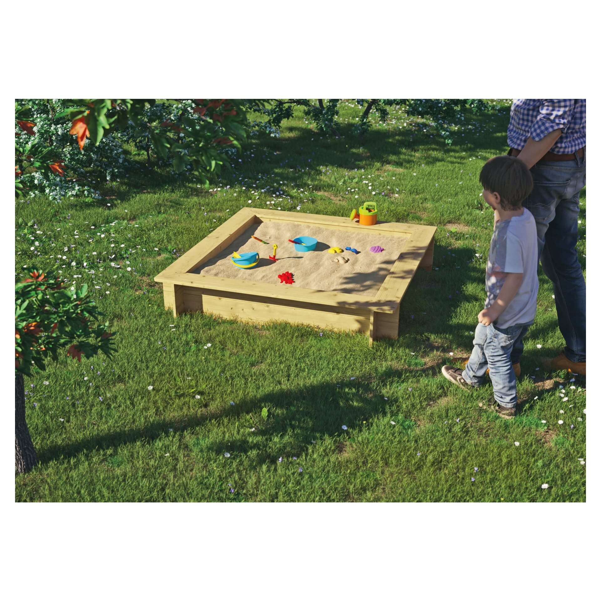 DANI-Sandkasten: 120 x 120 x 25 cm; Bretter 16 mm stark, gehobelt u. gefast Achtung: Biozidprodukte vorsichtig verwenden. Vor Gebrauch stets Etikett und Produktinformationen lesen. Achtung: Nicht geeignet für Kinder unter 3 Jahren. Benutzung unter Aufsicht von Erwachsenen. Achtung: Nur für den Hausgebrauch.