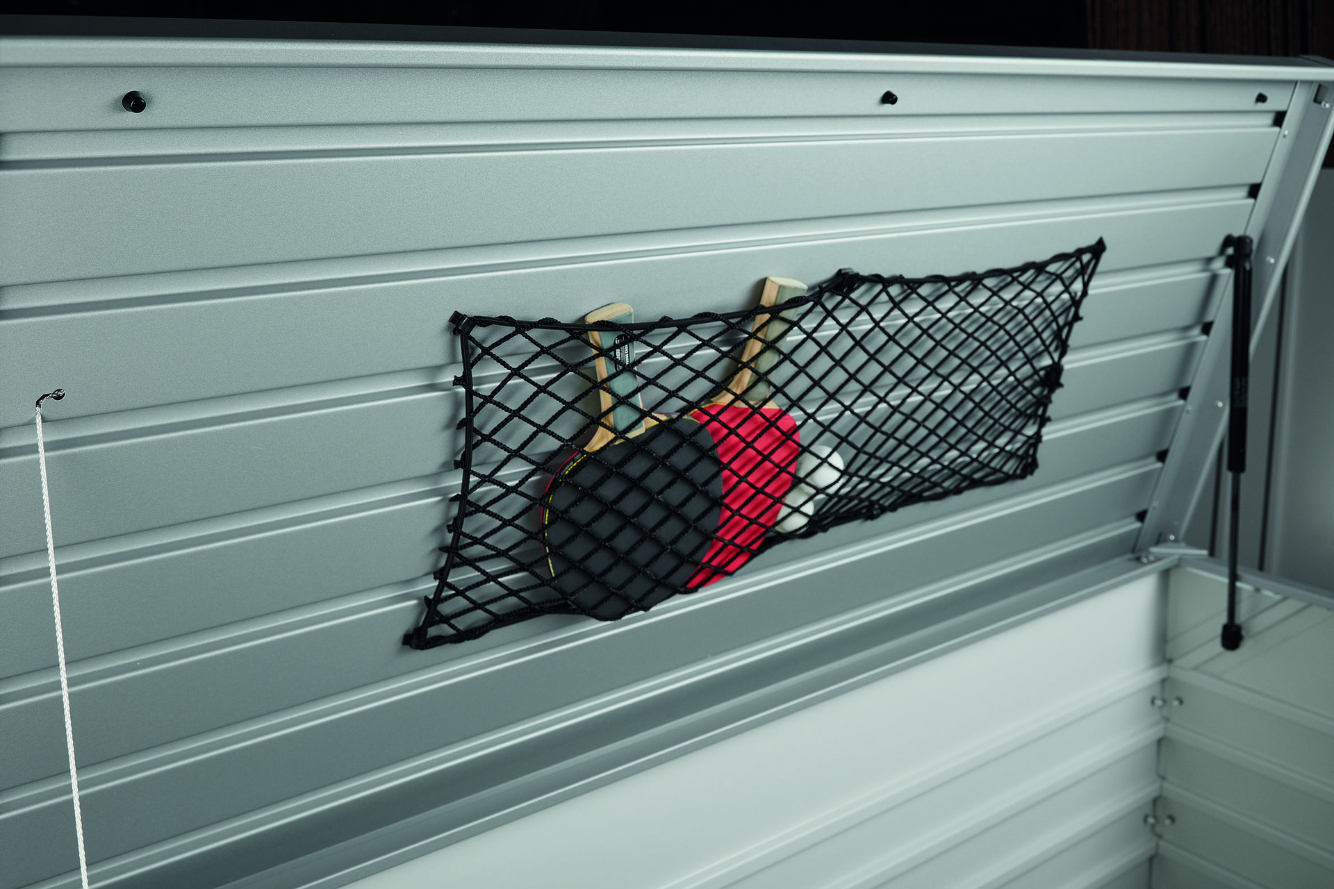Die Lösung für Kleinteile. Kann einfach an der Deckelinnenseite angebracht werden! Bei der FreizeitBox Gr. 180 und Gr. 200 haben sogar 2 Deckelnetze Platz! Netzgeflecht aus Polyamid mit Gummizug, inkl. Befestigungsmaterial.