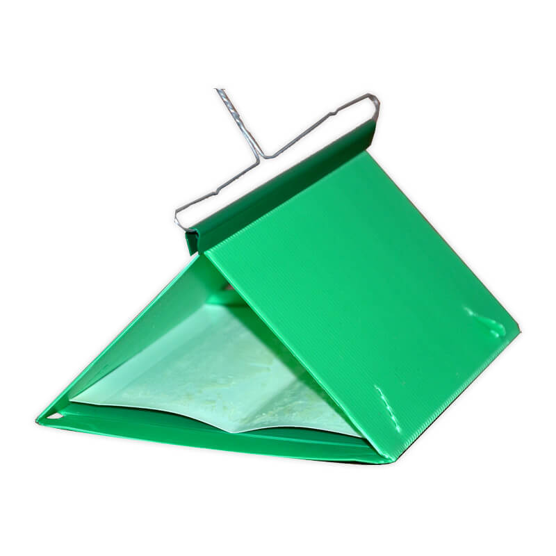 Stabile Pheromonfalle zum Monitoring des Falterfluges, komplett mit Aufhängedraht und 2 Leimböden, ohne spezifischen Lockstoff.