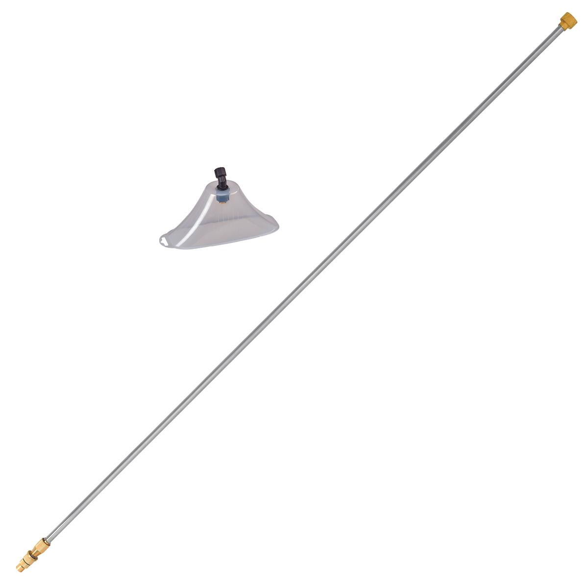 Das Original Einhell Sprüher Zubehör Kit ist ein zweiteiliges Zubehör-Set, das mit den Einhell Akku-Drucksprühgeräten GE-WS 18/35 Li, GE-WS 18/75 Li und GE-WS 18/150 Li verwendet werden kann. Die robuste Edelstahl-Sprühlanze ist teleskopierbar und kann in der Länge von min. 1 Meter bis max. 2 Meter verstellt werden. Mit Hilfe der transparenten Sprühglocke kann das Sprühmittel gezielt auf bestimmte Bereiche ausgebracht werden und man hat dabei stets optimale Sicht auf den Arbeitsbereich. Die Sprühglocke hat folgende Innen-Abmessungen: 210 x 75 x 95 mm.