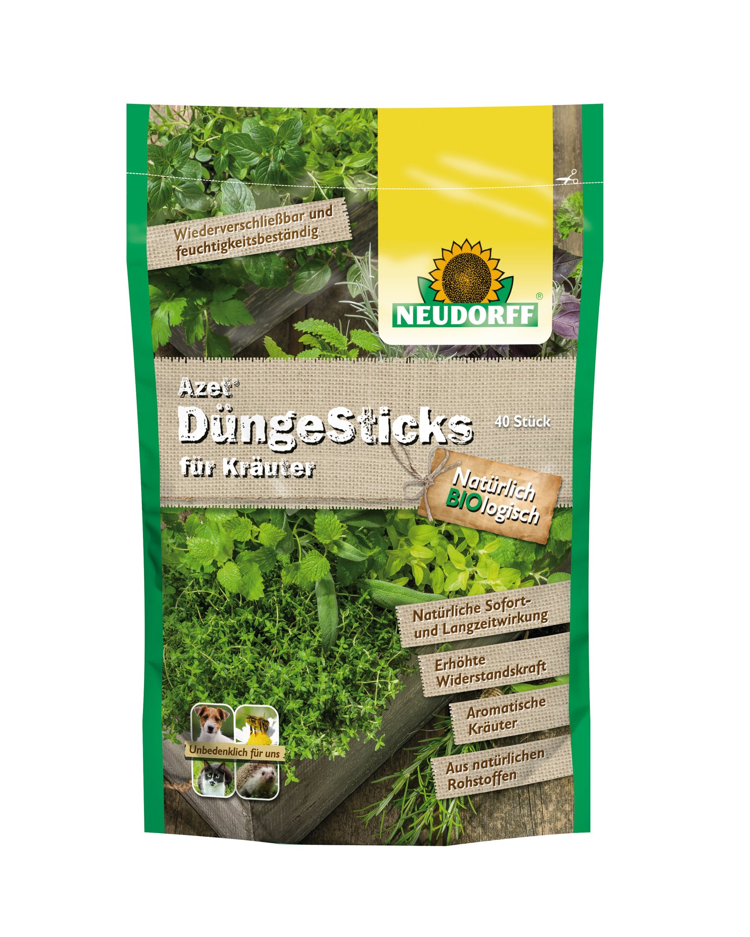 Mit den Azet Düngesticks ist für Ihre Kräuerpflanzen gut gesorgt. Der natürliche NPK-Dünger 8-2-5 aus natürlichen Rohstoffen verspricht Langzeitwirkung und sorgt für kräftiges und gesundes Pflanzenwachstum. Das Düngemittel enthält bodenbelebende Mikroorganismen und MyccoVital® (Mykorrhiza) und überzeugt durch einfache Handhabung durch die praktische Stickform. Mit dem wiederverschließbaren Beutel ist es möglich, das Düngemittel auch über längere Zeit hinweg ohne Qualitätsverlust zu lagern und es vor Feuchtigkeit und anderen Witterungseinflüssen zu schützen.
