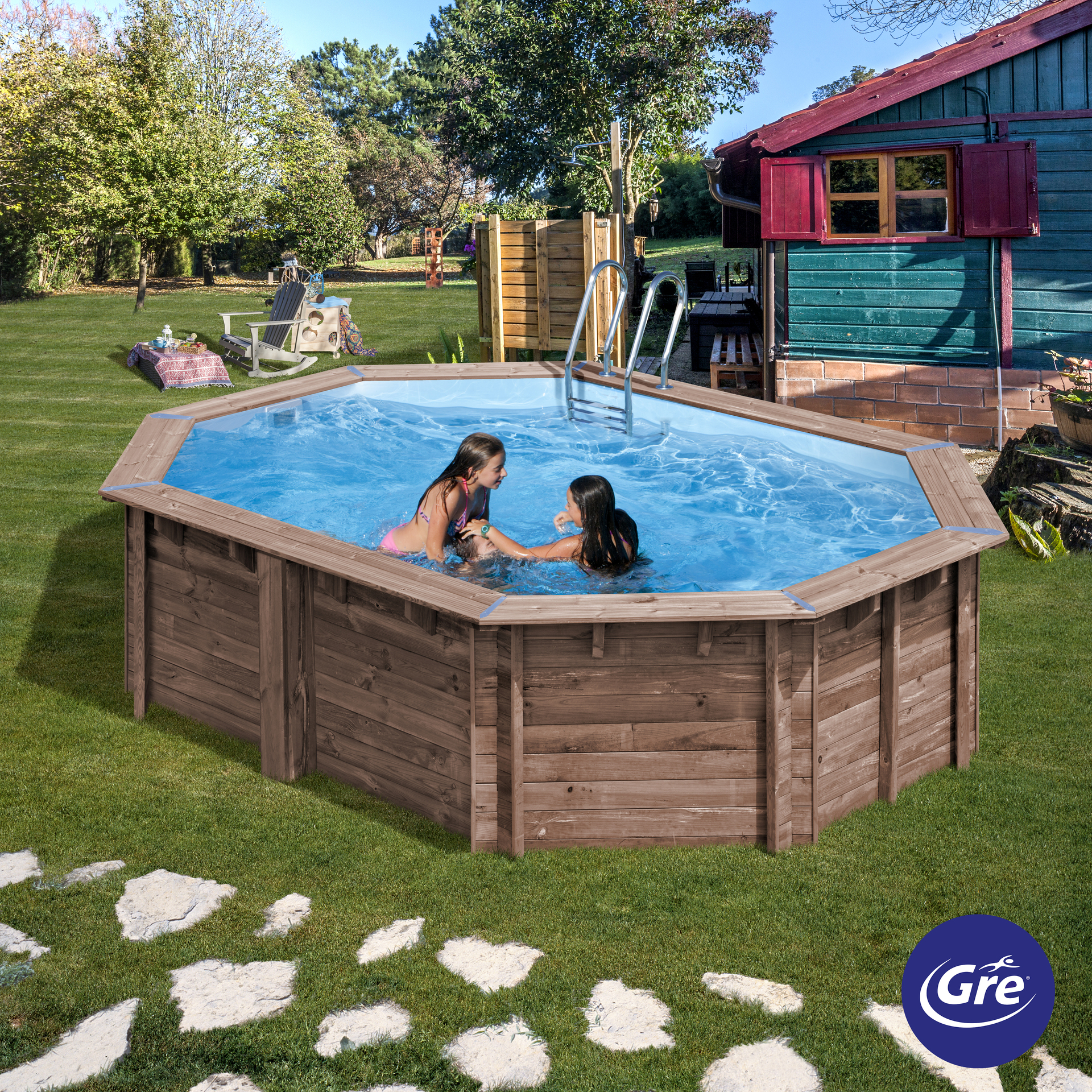 BAMBU – Ovaler Echtholzpool 535 x 335 x 130 cm (Außenmaß) – vol: 14,6m3 – 60/100 Poolfolie – 6m3/h Sandfilter – Edelstahlleiter – Boden- und Wandschutzvlies